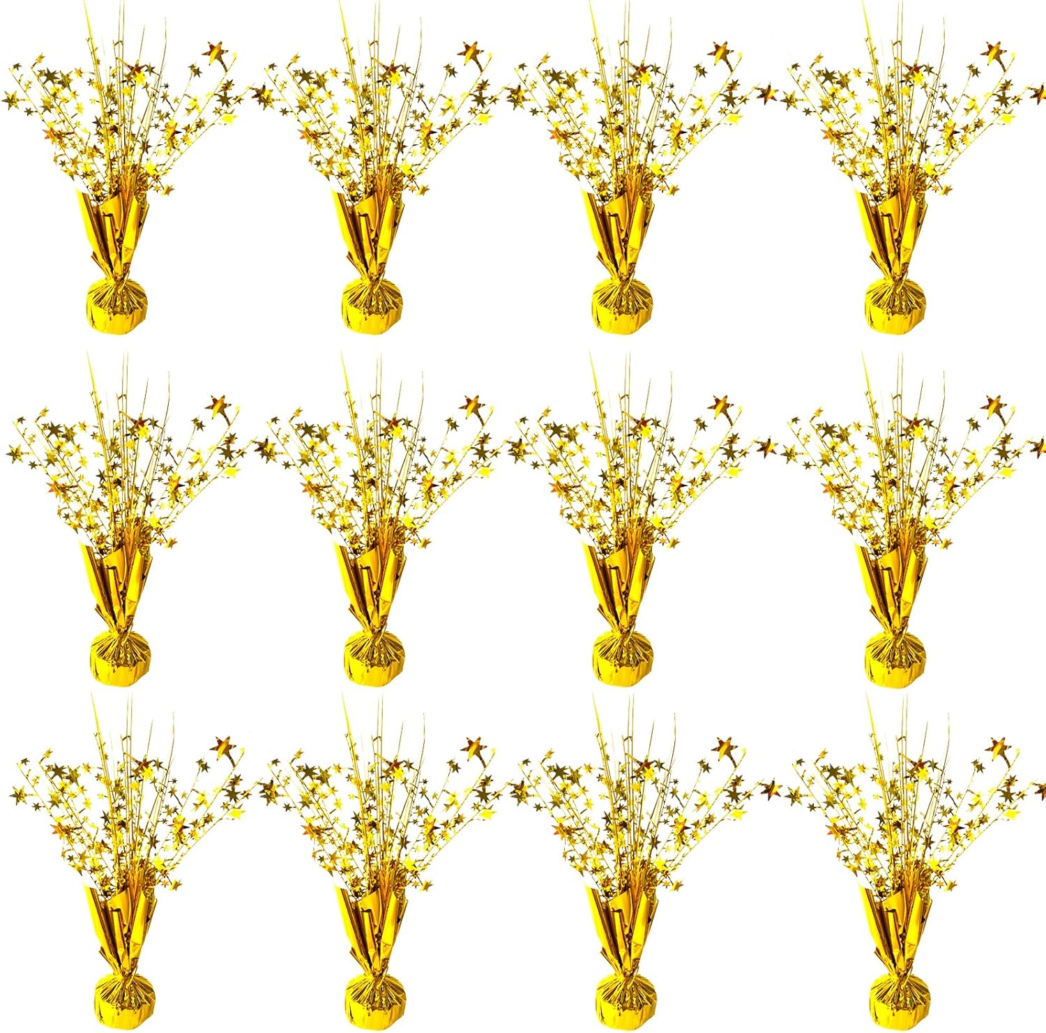 12 Pack Metallic Foil Spray Centerpiece Star Table Decoration Burst Table Centerpieces for Birthday Wedding Anniversary Graduation Holiday Party Supplies Decor, Gold