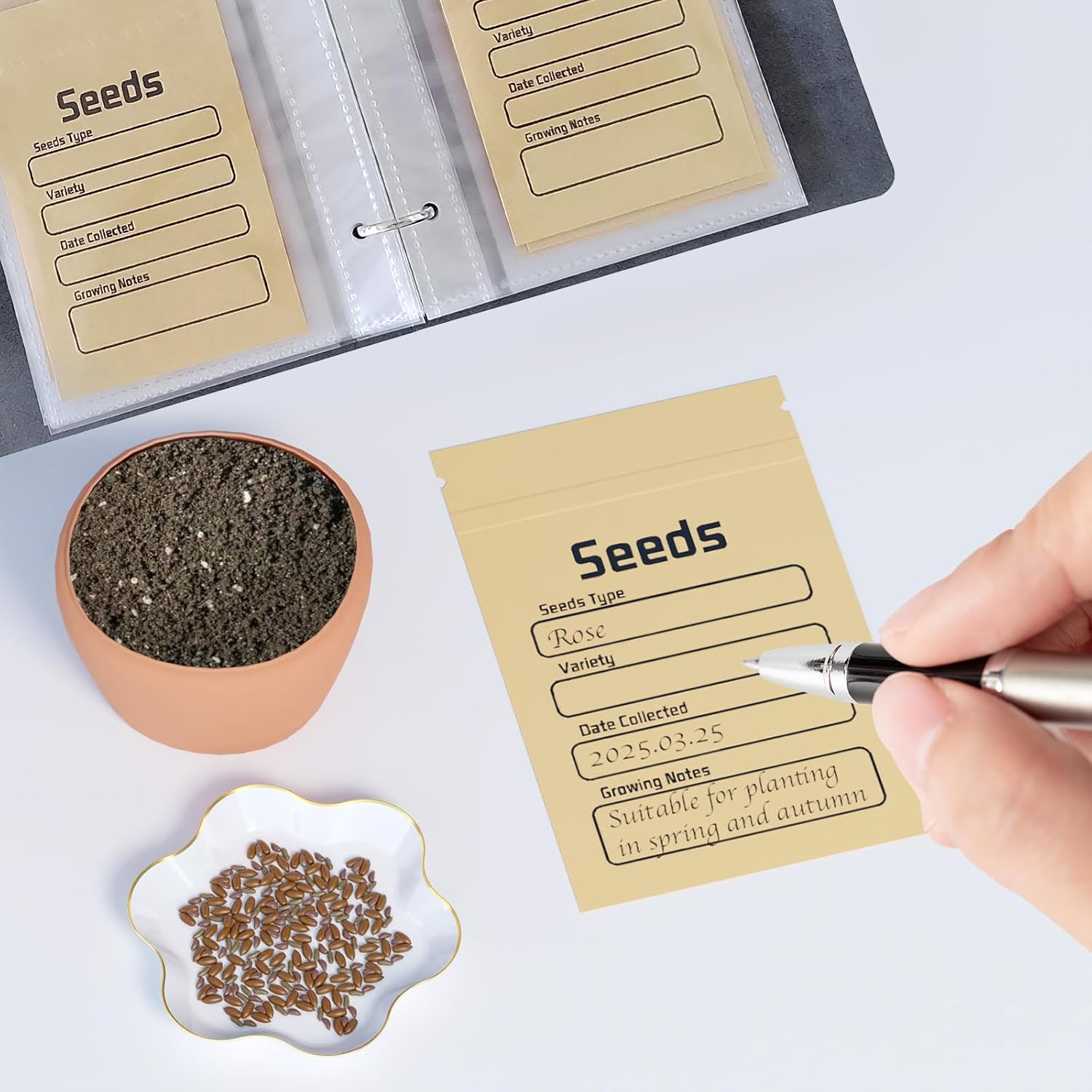 - COMPLETE SEED STORAGE SOLUTION: Our saving kit includes 1 binder featuring 25 sleeve pages (50 pockets) and 50 resealable kraft paper seed envelopes, offer an effortless seed management approach for whether experienced gardeners or a starter on growing journey.