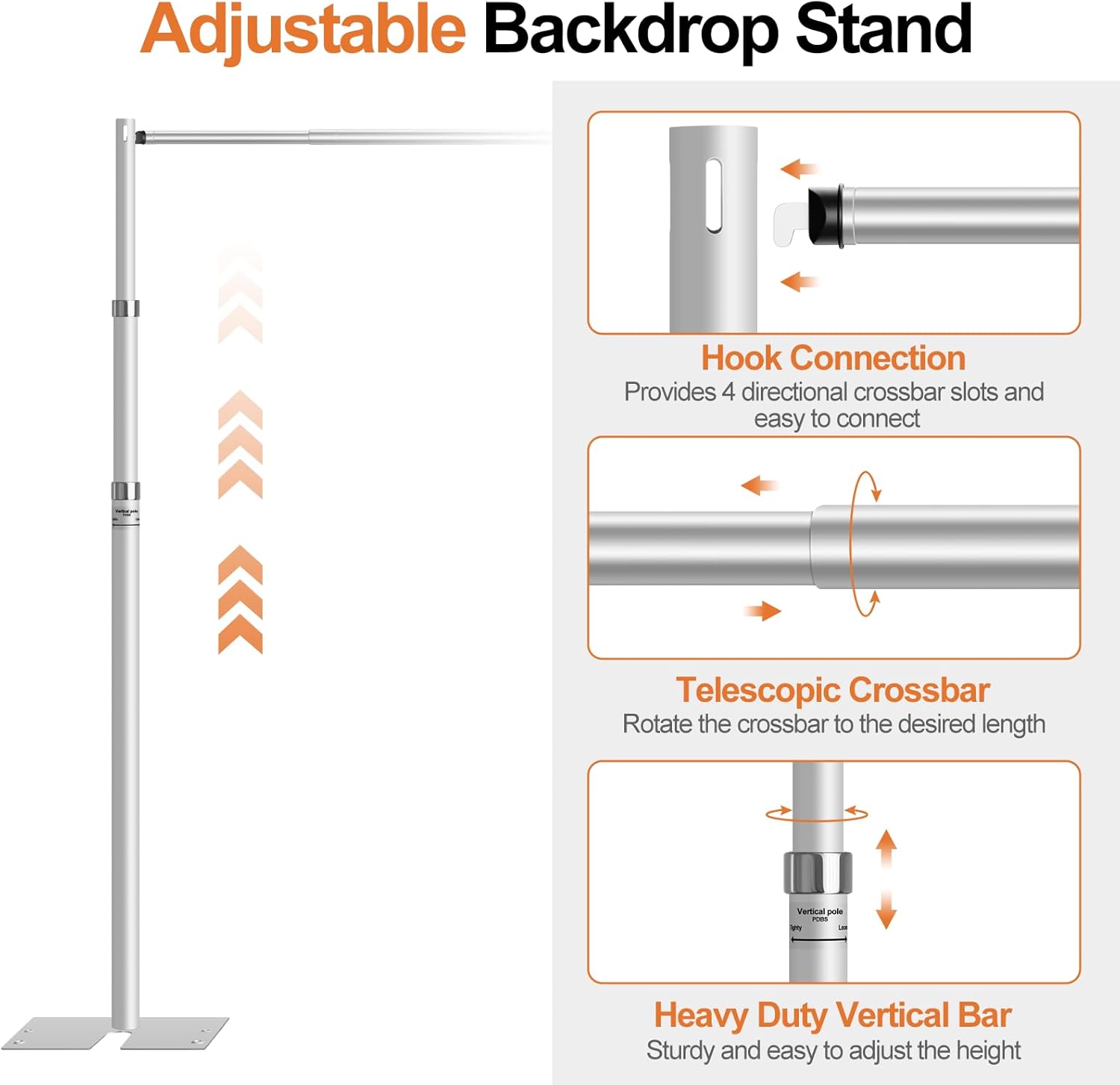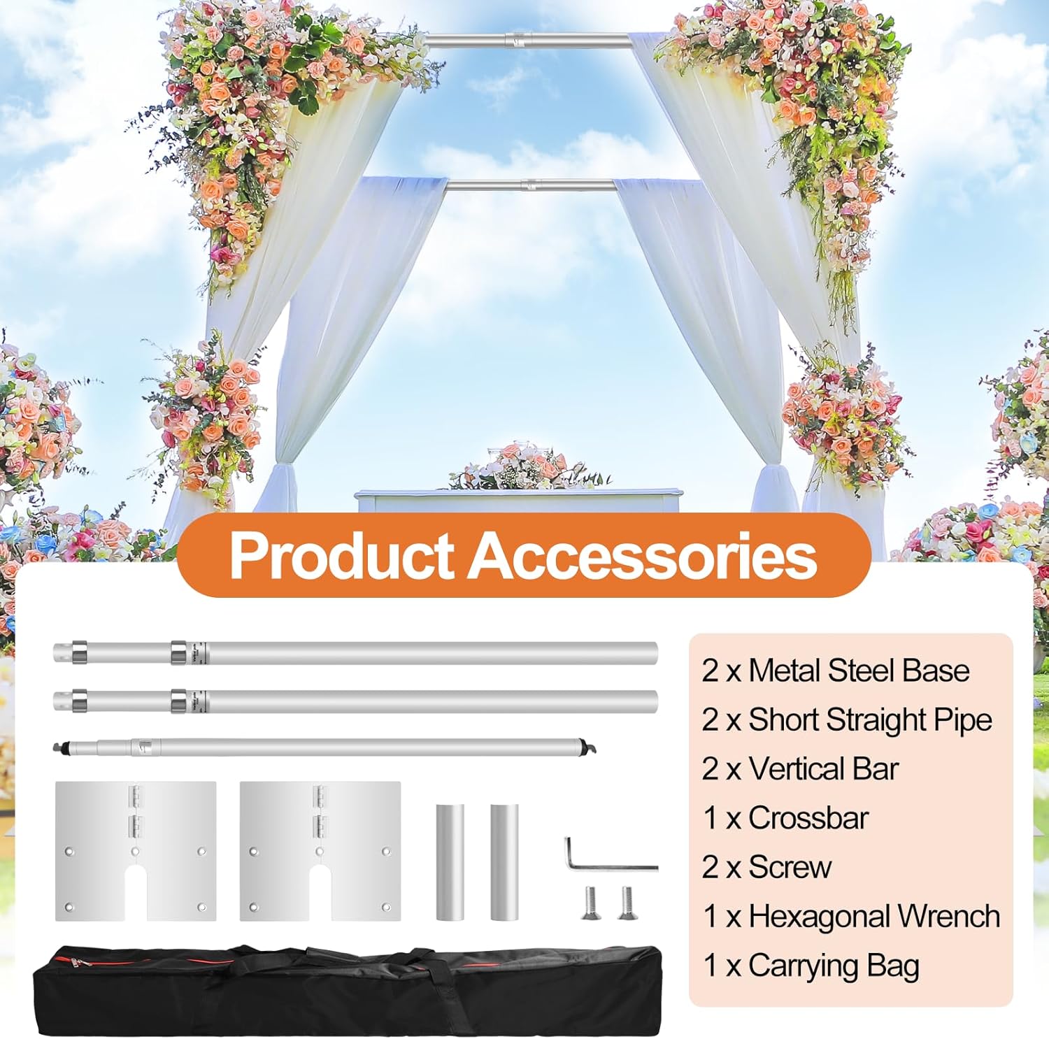 - Easy Assembly: Installation accessories and instructions are included in the package, making it easy to assemble the metal backdrop stand in just a few minutes