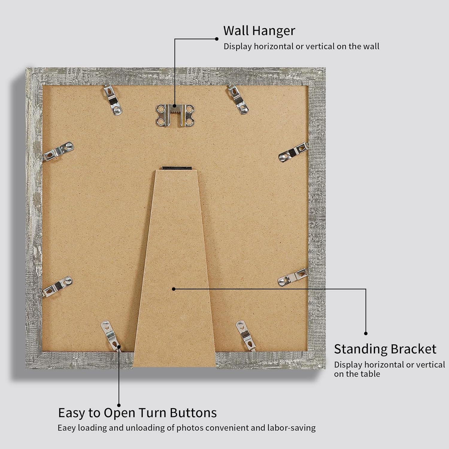 - Multi Frames Collage Set: Includes 4 frames in the same size. Perfectly fits 10x10 inch pictures with mat or 12x12 inch without mat. The frame opening display size is 0.5 inches smaller than the photo size for secure mounting.