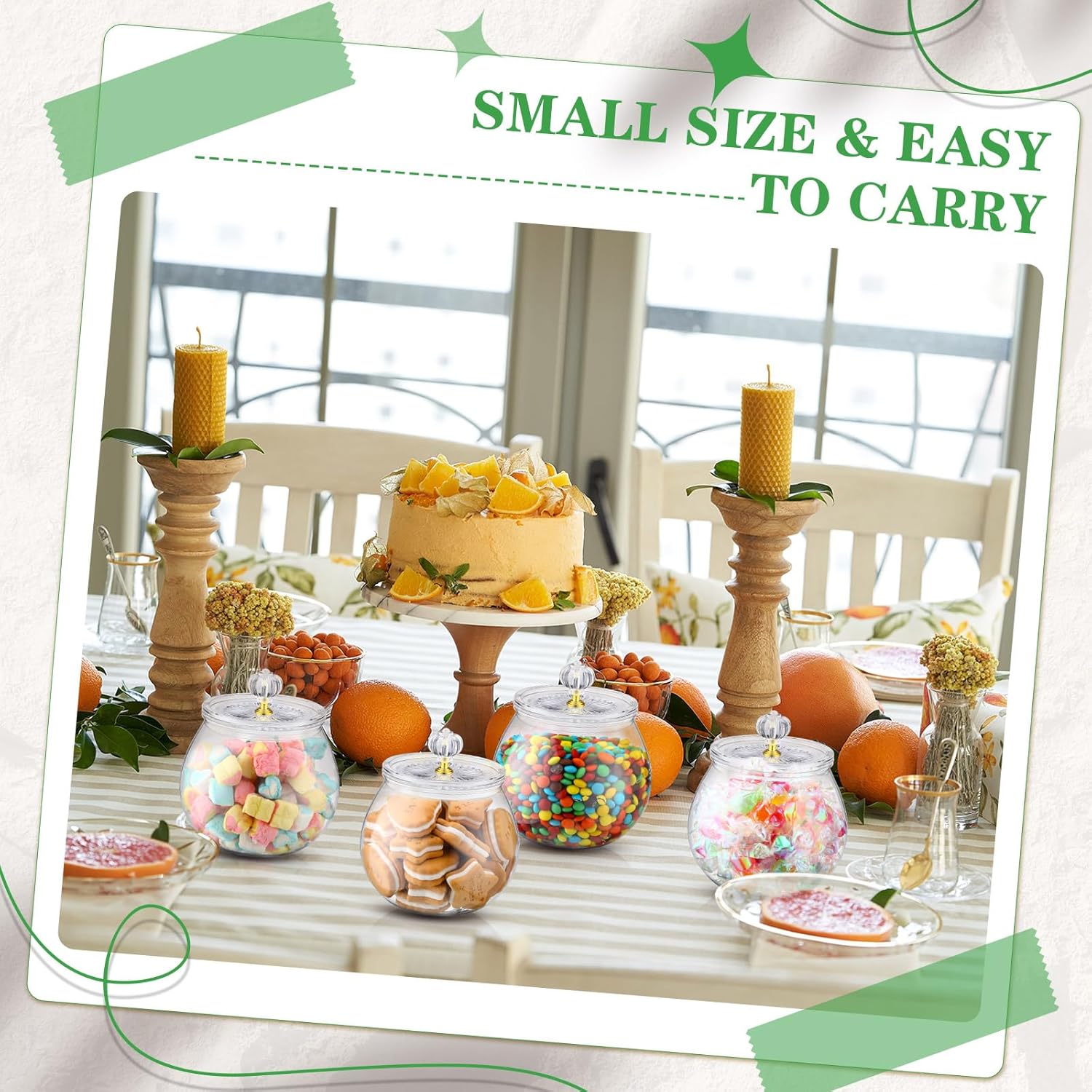 - Size and Capacity: the brilliant design of these plastic candy jars with lids boasts a size of about 4.92 x 4.13 inches/ 12.5 x 10.5 cm (excluding lid height); This space saving feature enables you to store up to 30 oz of your favorite sweets or snacks, fitting well on your kitchen counter or dining table