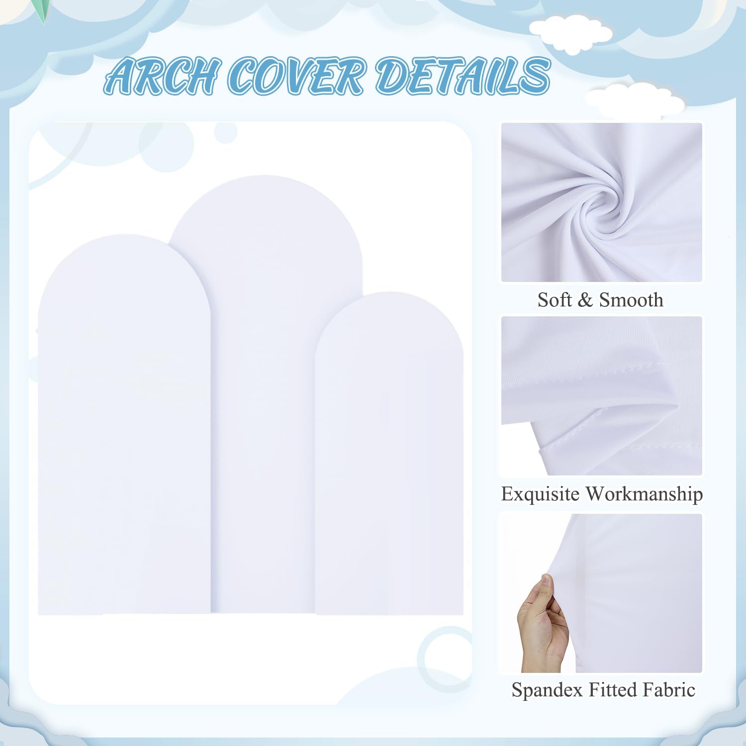 FOTSHARER Wedding Arch Backdrop Stand and White Spandex Arch Cover 6FT 5FT 4FT Set of 3 Metal Arched Frame Backdrop Stand for Parties Arch Stand Cover for Birthday Party Baby Shower Graduation Decor