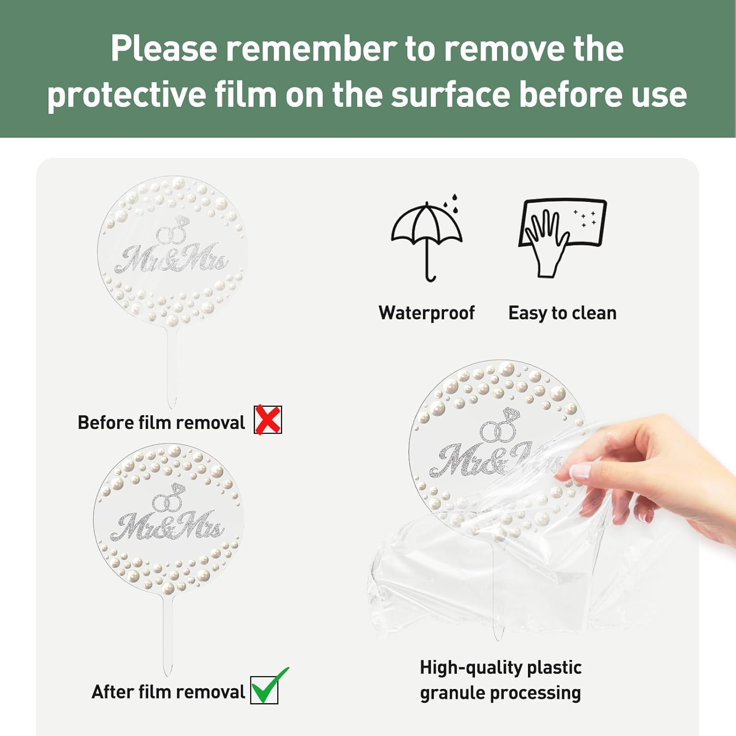 - 【Stable Base & Easy Maintenance】: Features a flat, non-slip base that securely attaches to cakes without damaging surfaces. The waterproof and dust-resistant design allows simple cleaning with a damp cloth, ideal for "mr and mrs sign" displays.