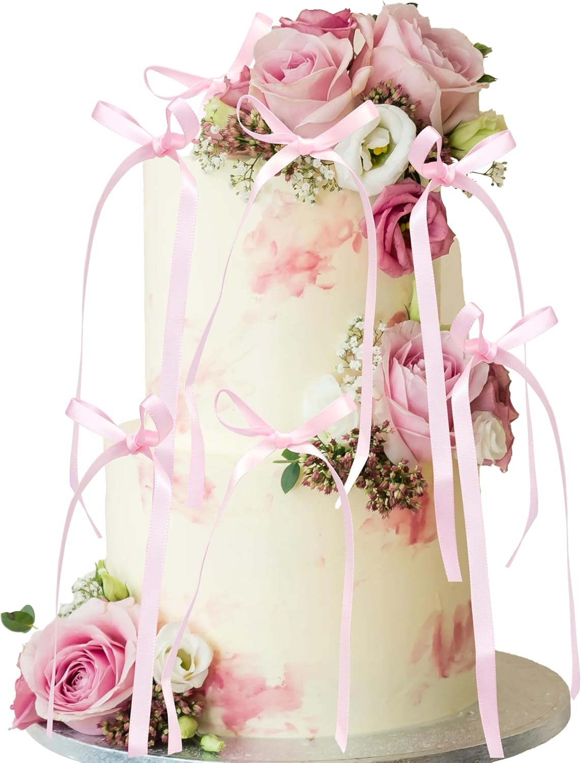 Ephlyn 30Pcs Bow Cupcake Toppers Valentine's Bowknot Ribbons Coquette Bow High Footed Cup Balloon Wall Party Decorations Cake Dessert Picks Birthday Wedding Party Supplies Pink