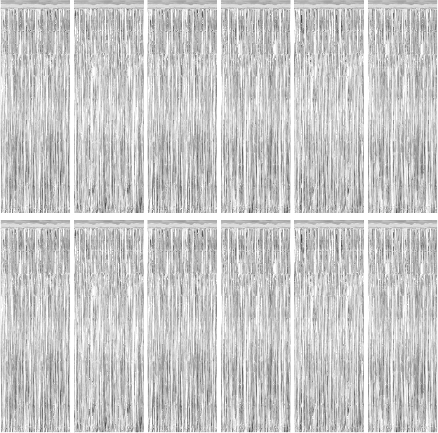 12 Pack Silver Backdrop. 3.28 FT x 7.05 FT Birthday Decorations, Metallic Silver Fringe Backdrop Foil Curtains Tinsel, Disco Party Decor Photo Booth Props Door Decorations Hanging