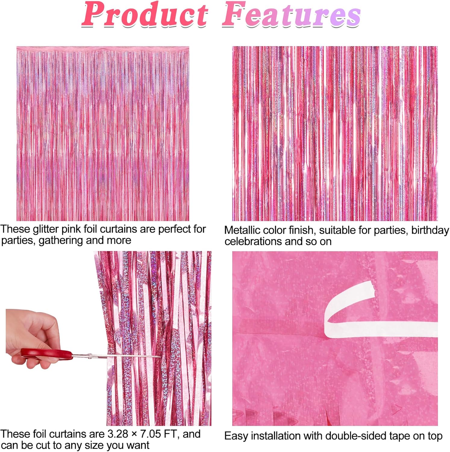 - Glitter Design: Each foil curtain displays a unique glitter pink color with a laser-reflective metallic finish, adding a glittery visual effect to your 21st birthday decorations.
