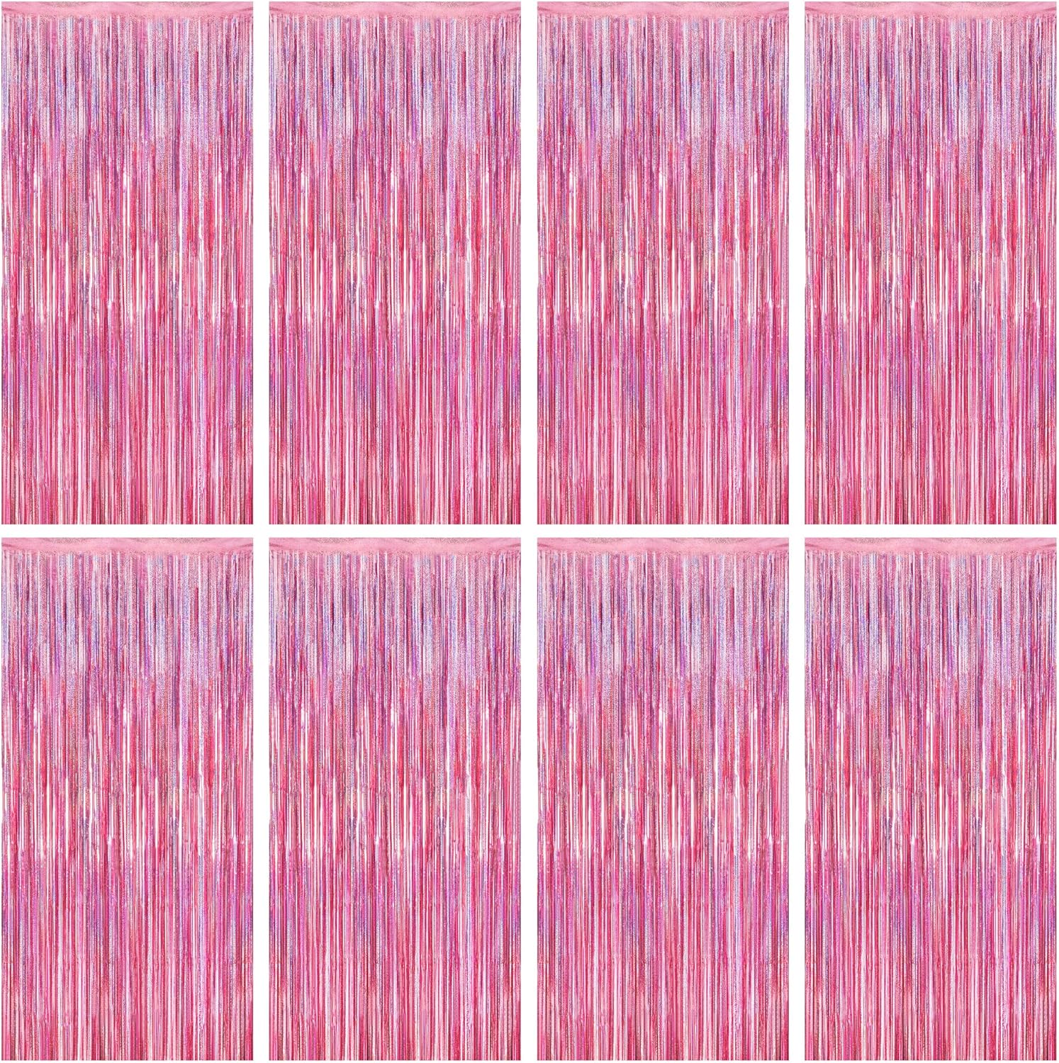 8 Pack Pink Backdrop, 3.28 FT x 7.05 FT Fringe Curtains, Metallic Glitter Pink Fringe Party Streamer Foil Curtains Tinsel Backdrop, Pink Decorations Bachelorette Party Supplies Birthday Decor
