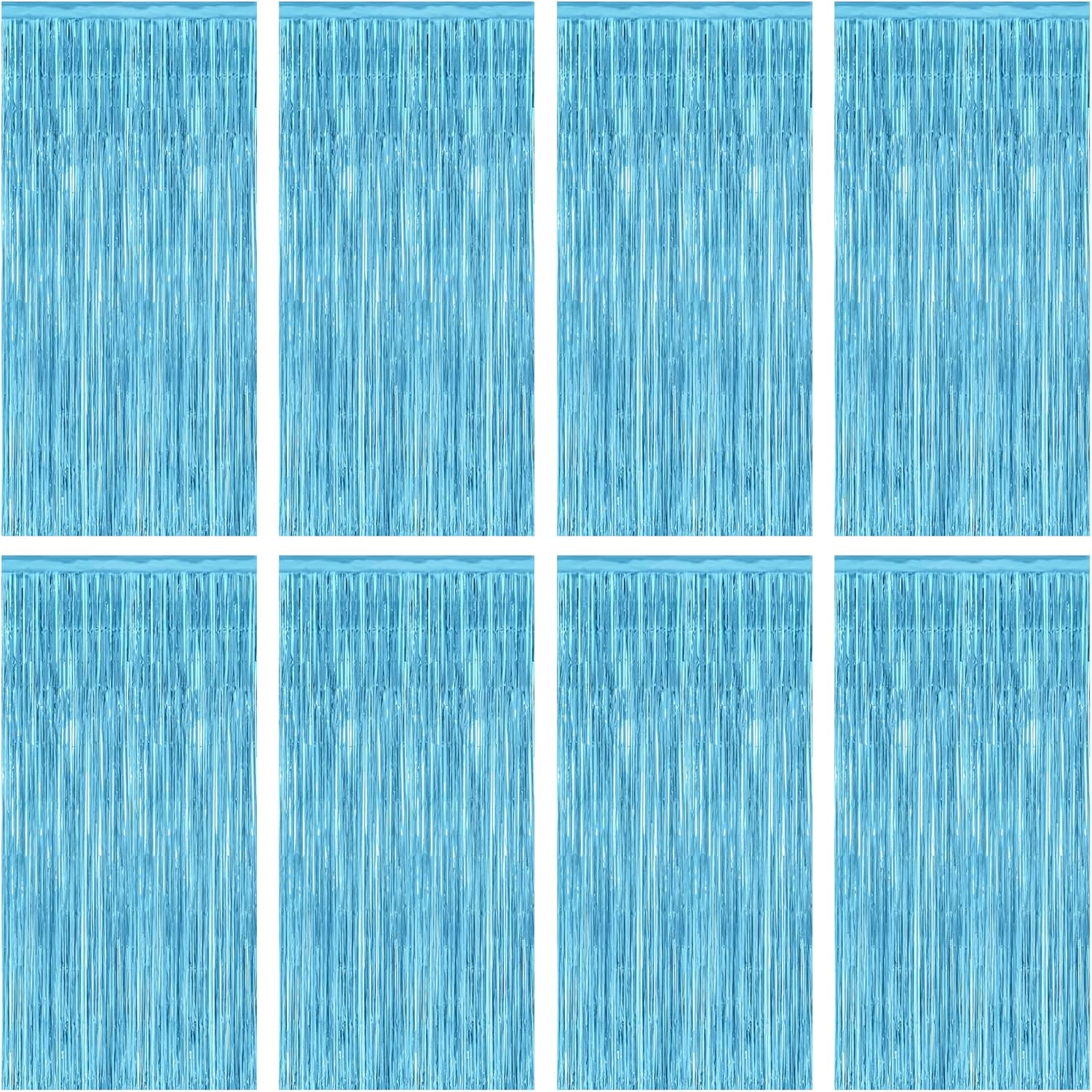 8 Pack Party Decorations, 3.28 FT x 7.05 FT Party Streamer, Metallic Sky Blue Tinsel Backdrop Fringe Curtains Party Decorations, Light Blue Birthday Backdrop Photo Booth Props