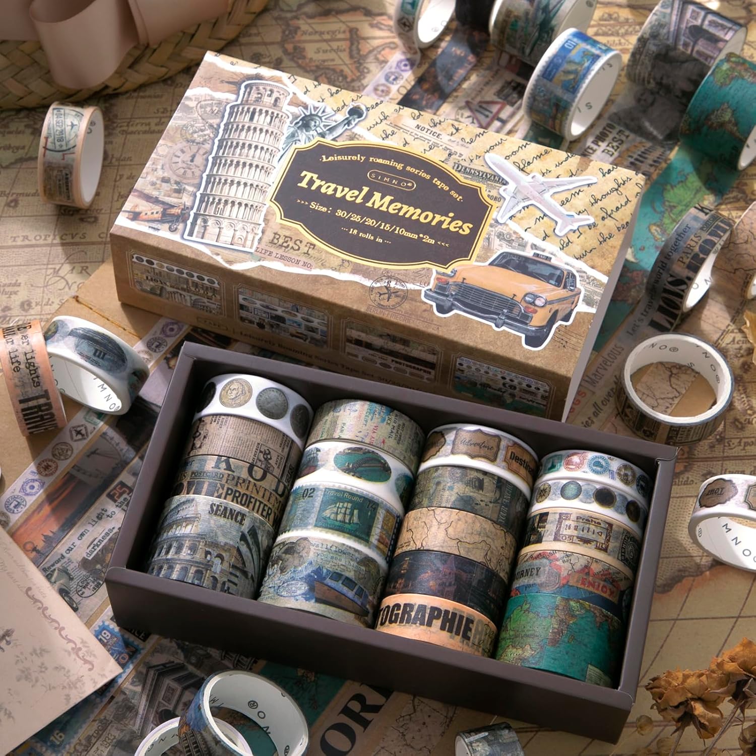 18 Rolls Travel Washi Tape Set journaling Tape for Crafts and Journaling DIY Scrapbook Tape for journaling Scrapbooking Supplies washi Tape for Scrapbooking