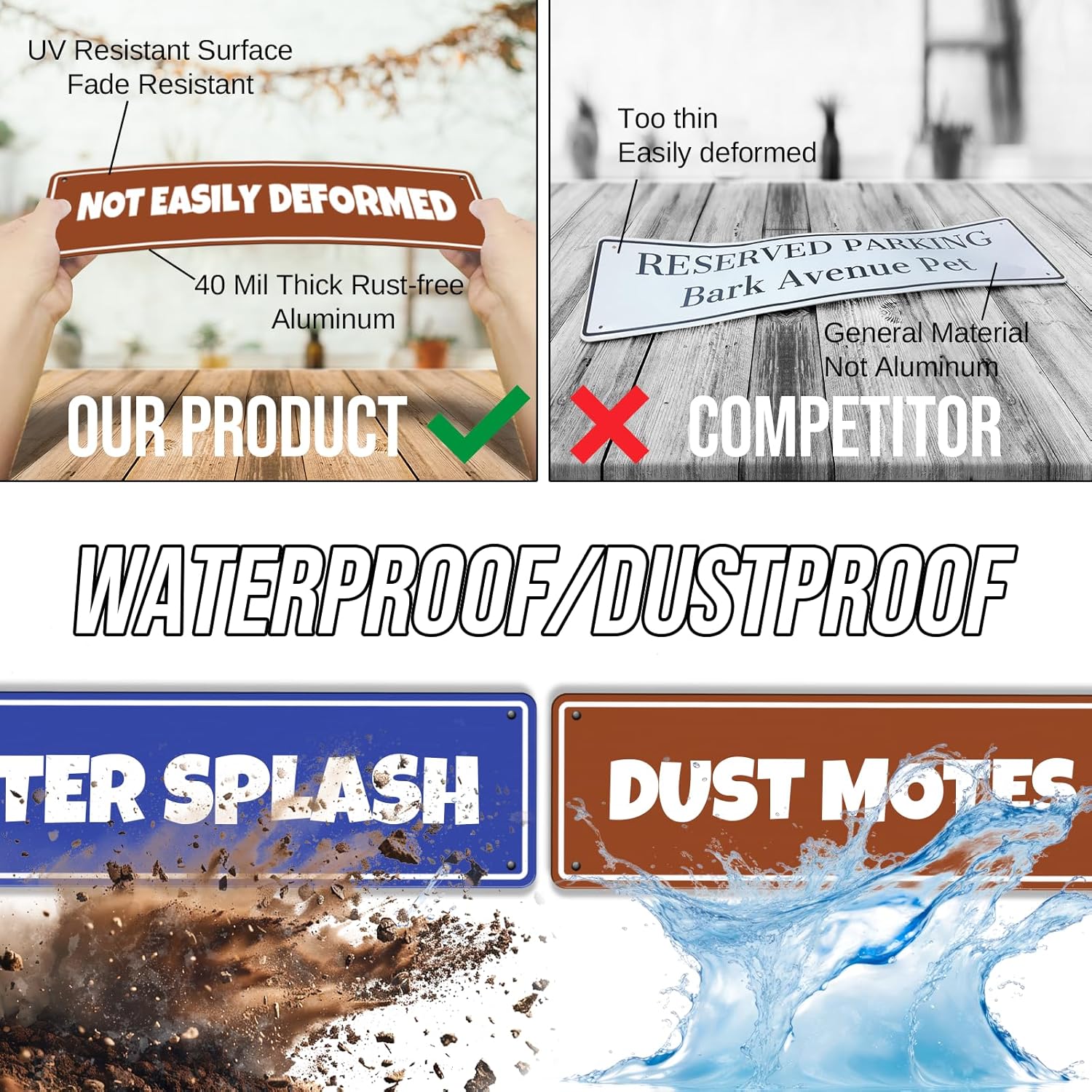 - Material: Our metal signs are made of high-quality aluminum metal, it is rust-proof and durable, can be used for a long time and the text is clear and easy to read. The surface of the sign has a protective coating to withstand sun, snow, rain and cold.