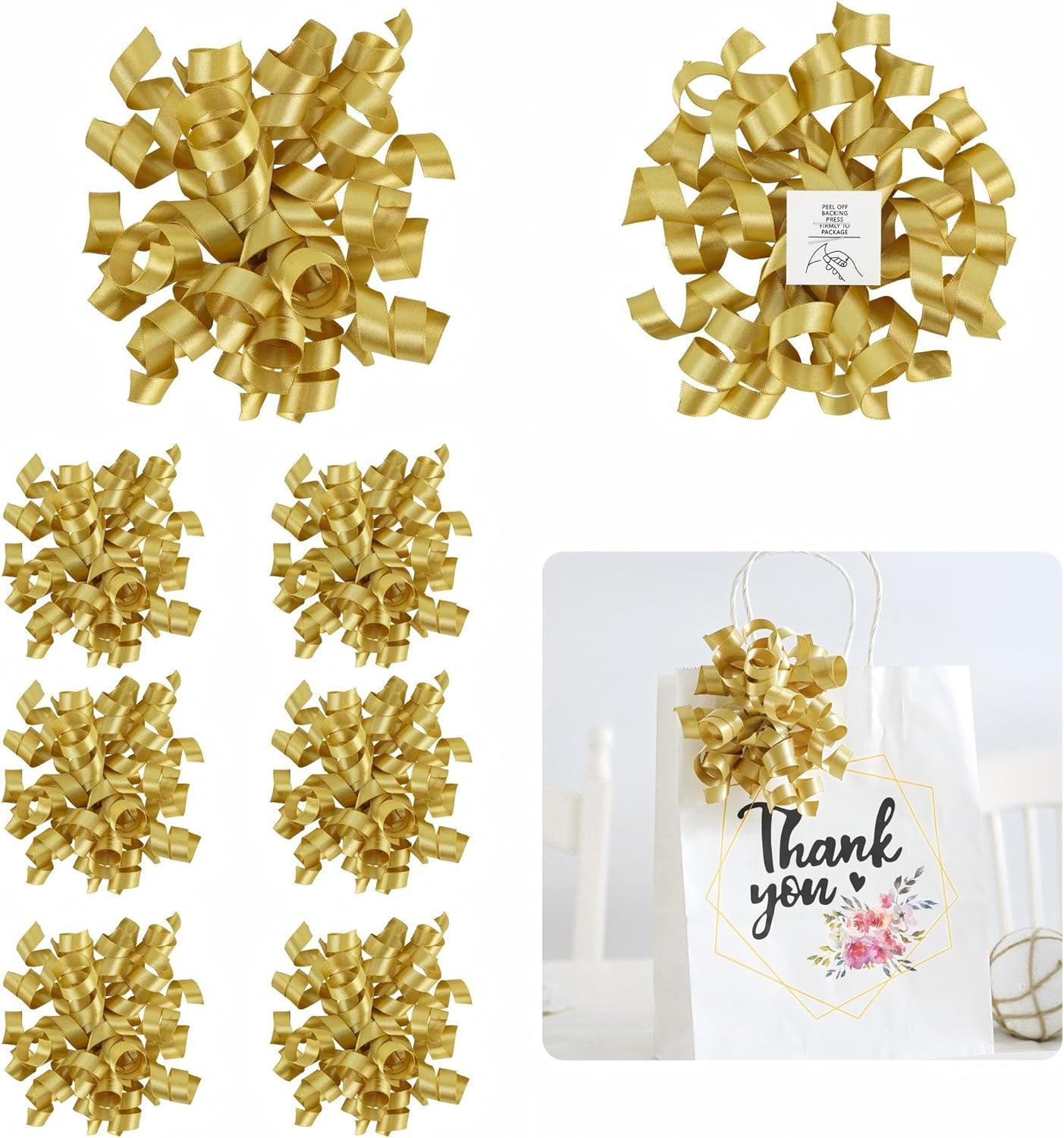 - Perfect Size: These craft bows measure approximately 5'' with a ribbon width of 0.35'' and self-adhesive tags measuring 1.2''. Perfect for wrapping gift bags and making crafts, make your decoration more attractive. Each curly ribbon bows is unique for handmade.