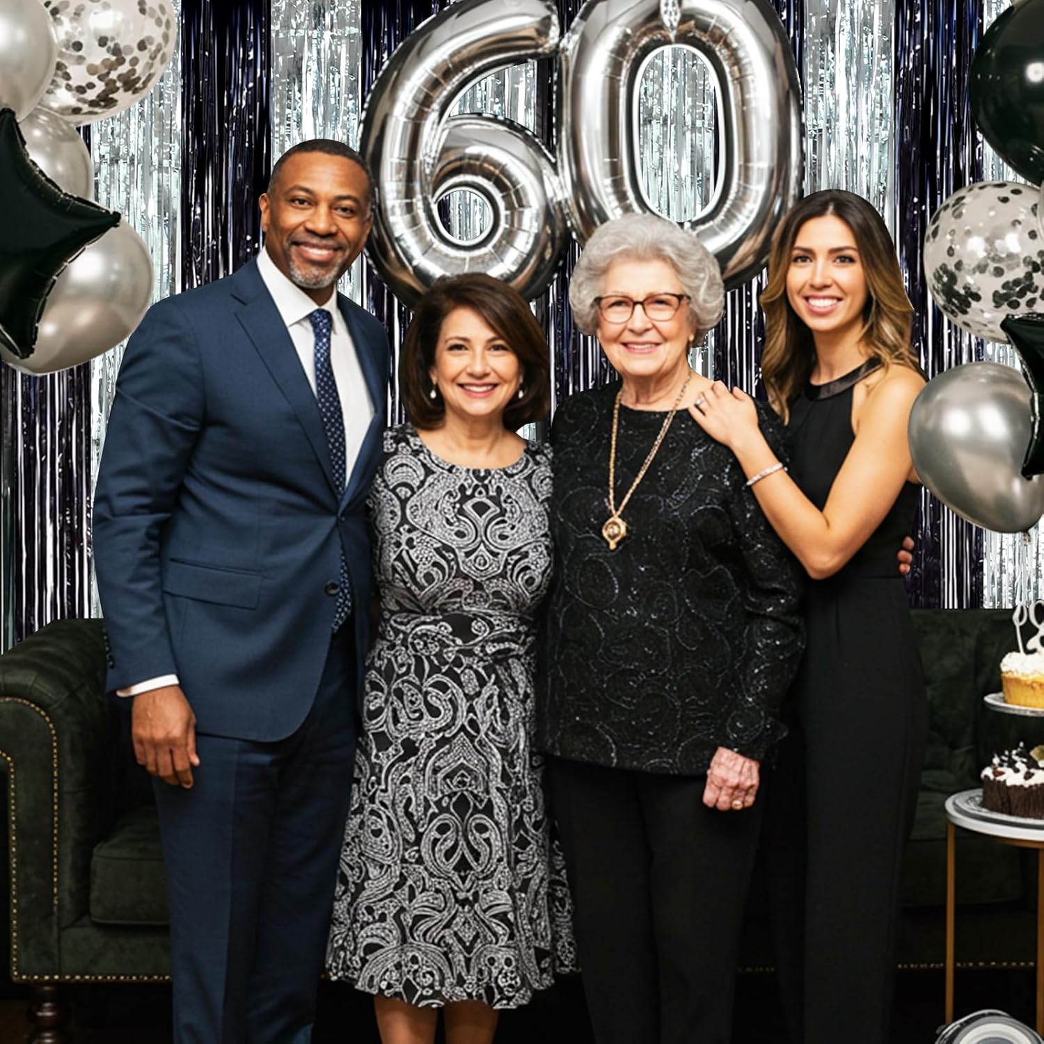 BEISHIDA 2Pcs Black Silver Door Streamers Congrats Grade 2025 Decoration Backdrop Foil Fringe Tinsel Party Streamers Curtains for Birthday Graduation Bachelorette Party Decoations (3.28 ft x 6.56 ft)
