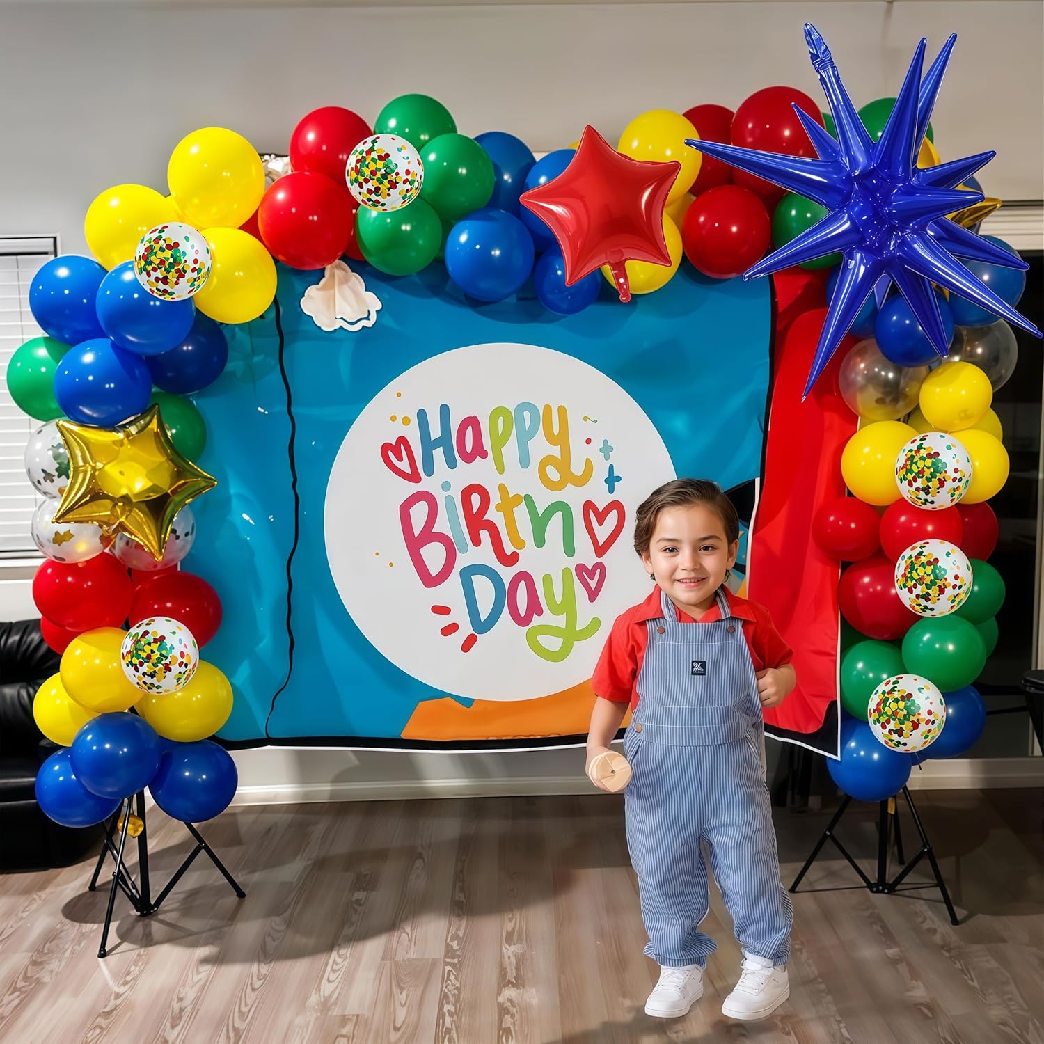 - Perfect for All Occasions - Our balloon garland kit is ideal for birthday, baby/bridal shower, wedding, carnival circus, anniversaries, and more. The vibrant mix of red yellow blue and green balloons, adds an energetic and playful vibe to any event, perfect for a fun-filled or game celebration. Suitable for both indoor and outdoor celebrations, it serves as a stunning photo booth backdrop decorations, transforming your space into a breathtaking setting. Create unforgettable moments!