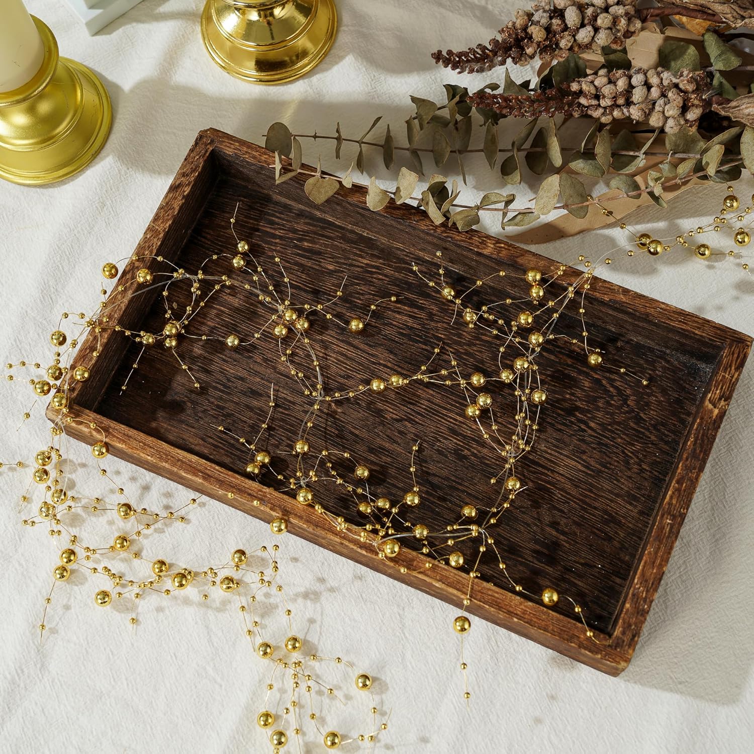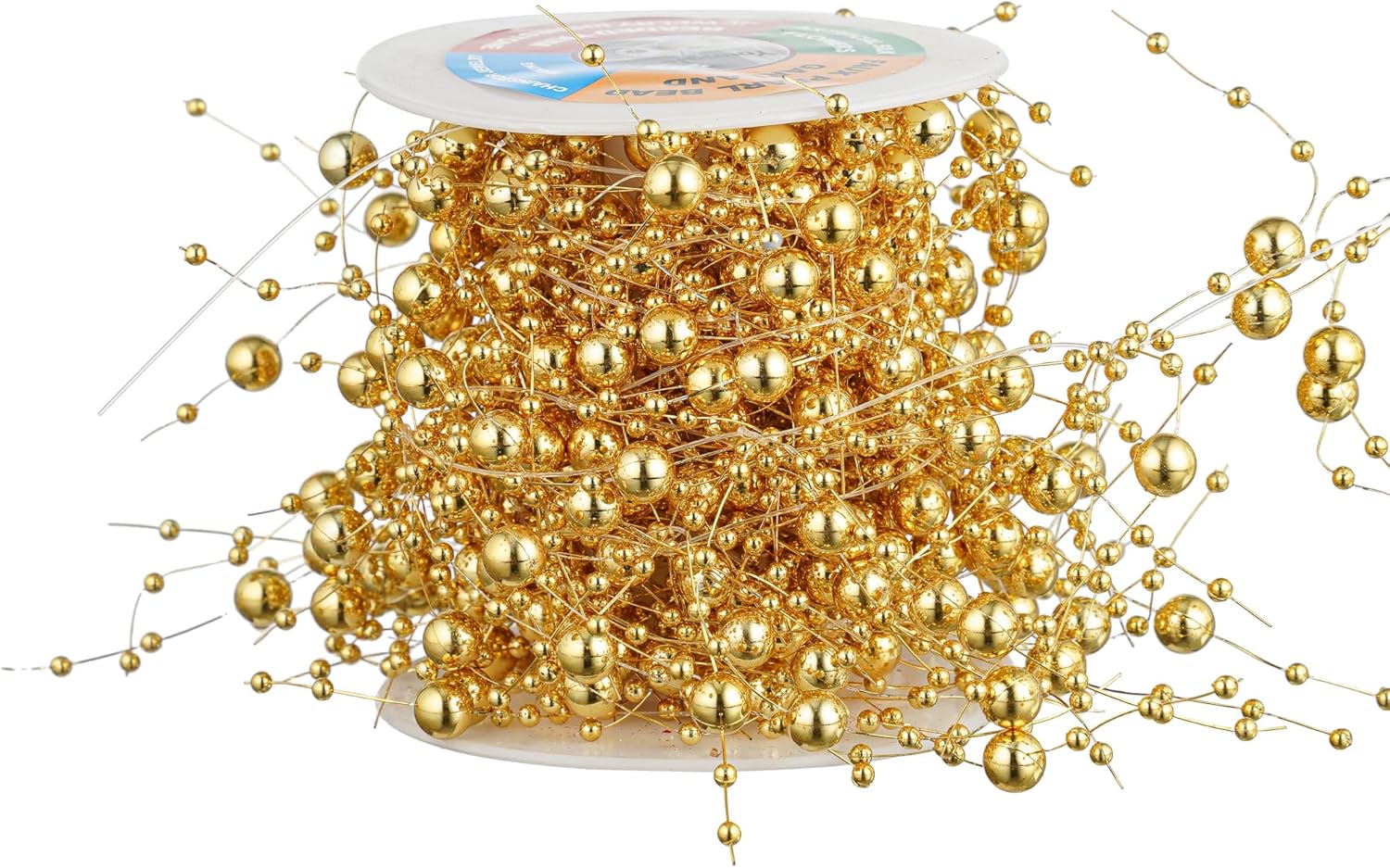 13Feet Pearl String Spool Roll for Floating Candles Faux Pearls Strands Garland for Vase Filler Wedding Centerpiece Christmas Table Decor (Gold)