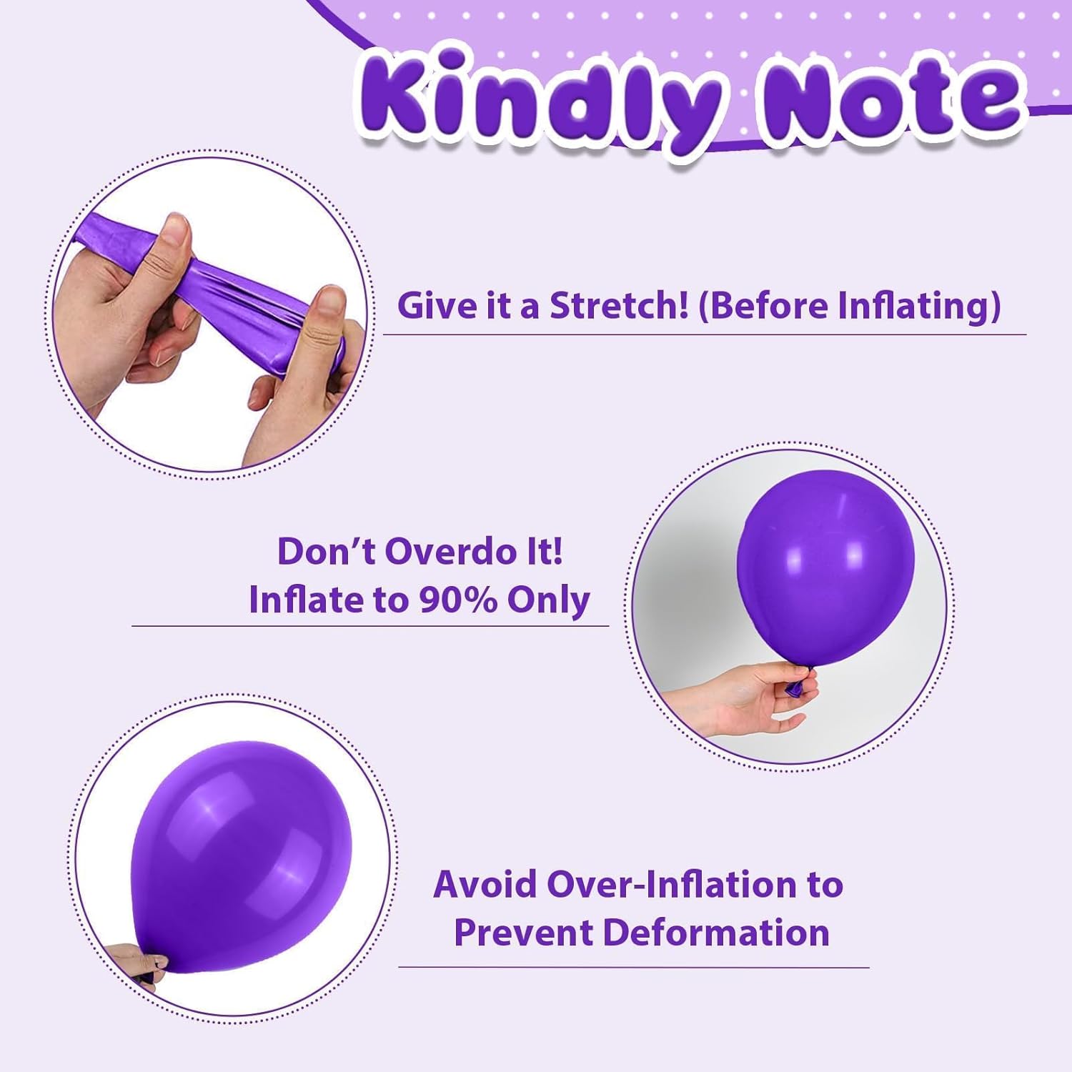 - Premium Quality Balloons: These metallic purple balloons are crafted from premium latex, offering excellent elasticity and durability. they can be filled with either helium or air, and when tied securely, they'll stay inflated for several days! With no strong odors, they are safe for children. With their vibrant colors, they are the ideal choice for adding a fun, colorful touch to any party or event.