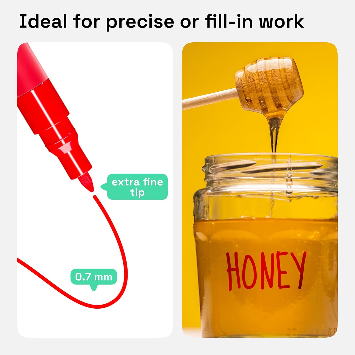 - Extra-Fine Tip: The red oil-based paint marker features a durable 0.7mm extra-fine tip for precise detailing. Great for fine line work, small lettering, rock painting, DIY decorations, and custom designs for Christmas, birthdays, weddings, or any special event.
