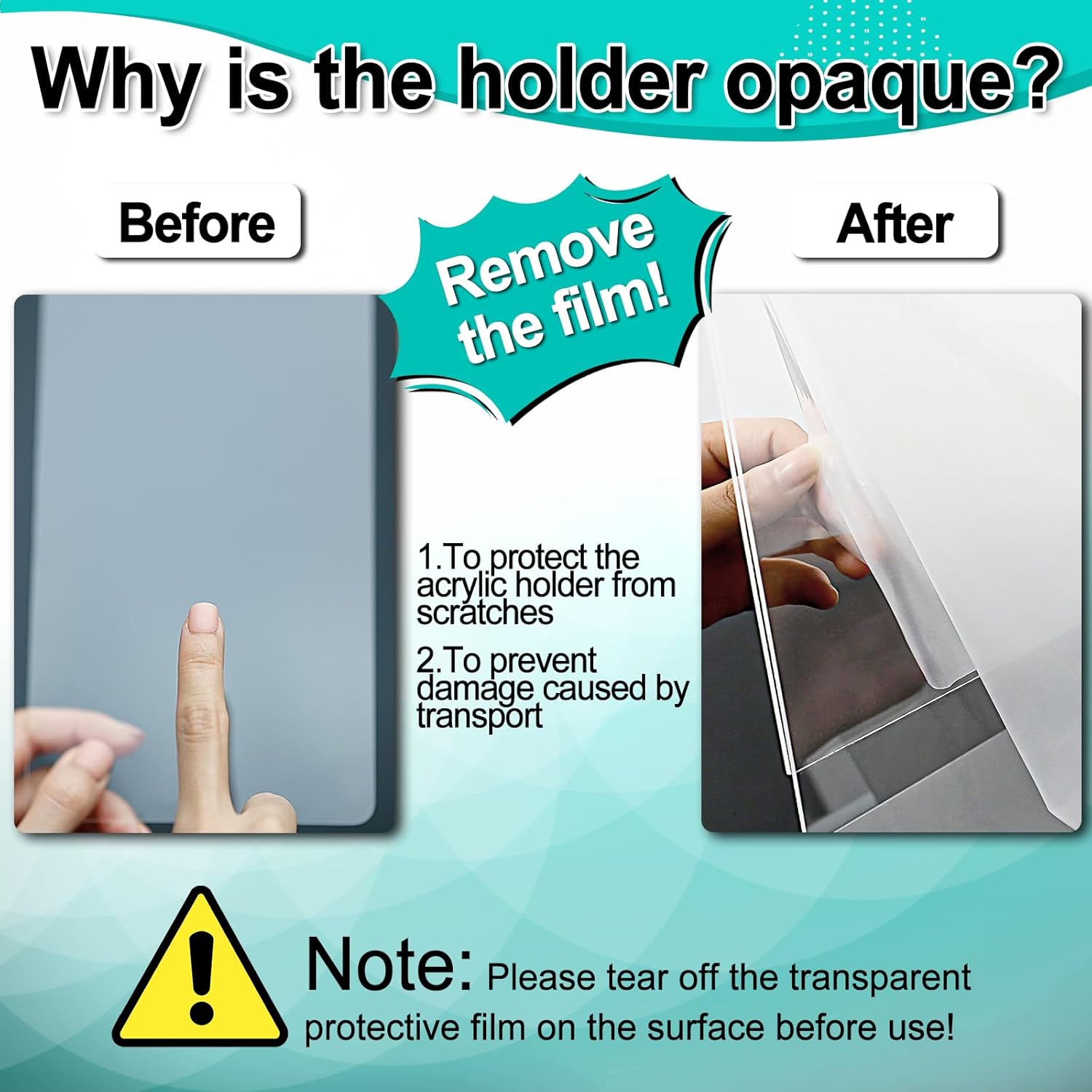 - Tips:As we cover the surface of the plastic paper holder with a protective film, the surface of the wall sign holder you receive does not look transparent, you need to manually peel off the surface of the clear protective film before use. If there is any damage, please feel free to contact me, I will provide you a satisfactory solution within 24 hours