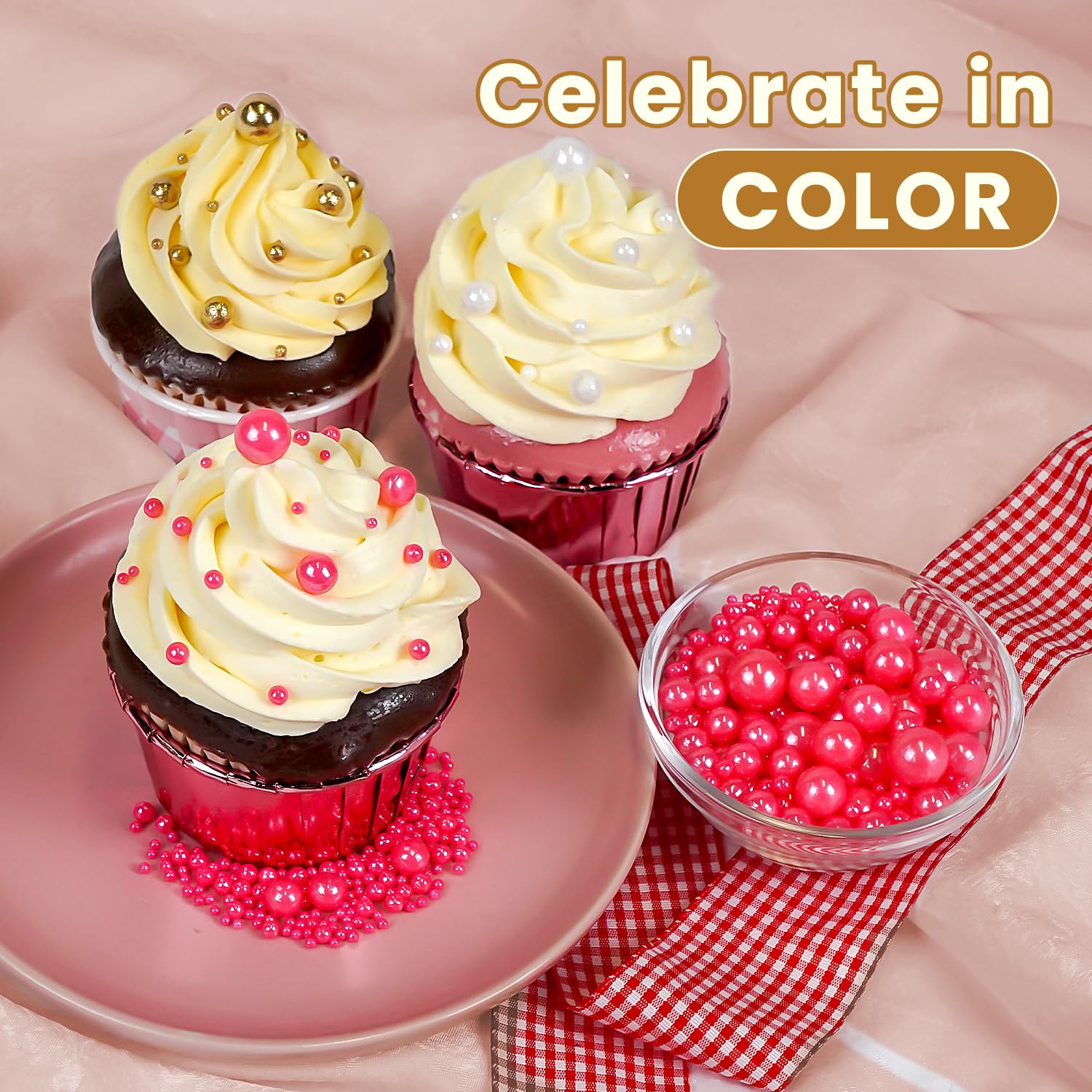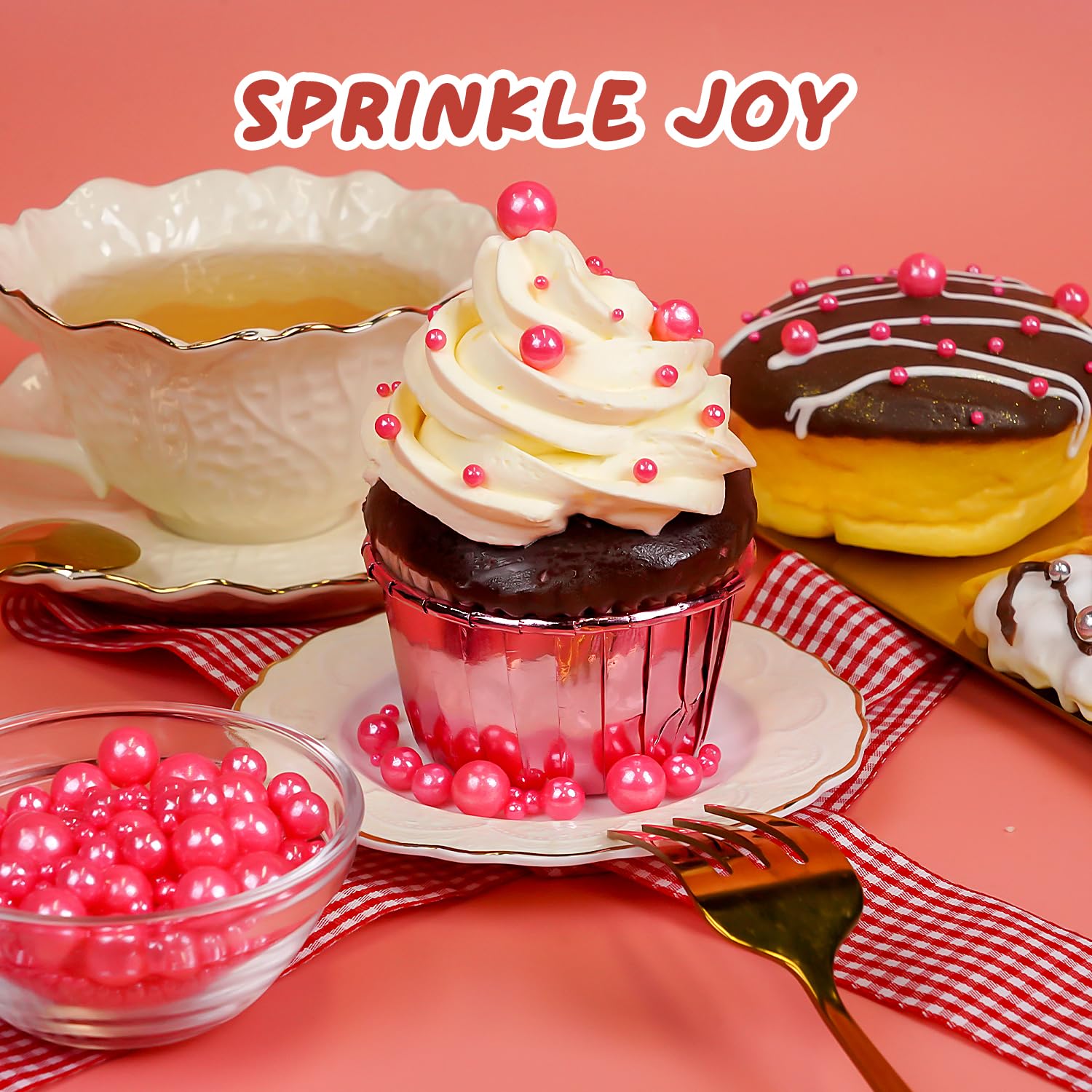 - Perfect Decoration: Candy pearls come with 5 different sizes, and can be combined with other toppings.Pink edible sprinkles can add a sense of decoration to cakes,cupcake,cookies,Ice cream and other foods, making it more beautiful and unique. The sprinkles are bulk. 180g shaker bottle decorates 6-8 large cakes or 100+ cookies β cost-effective for bakeries and DIY events like Christmas gingerbread houses or Halloween tombstone cakes.