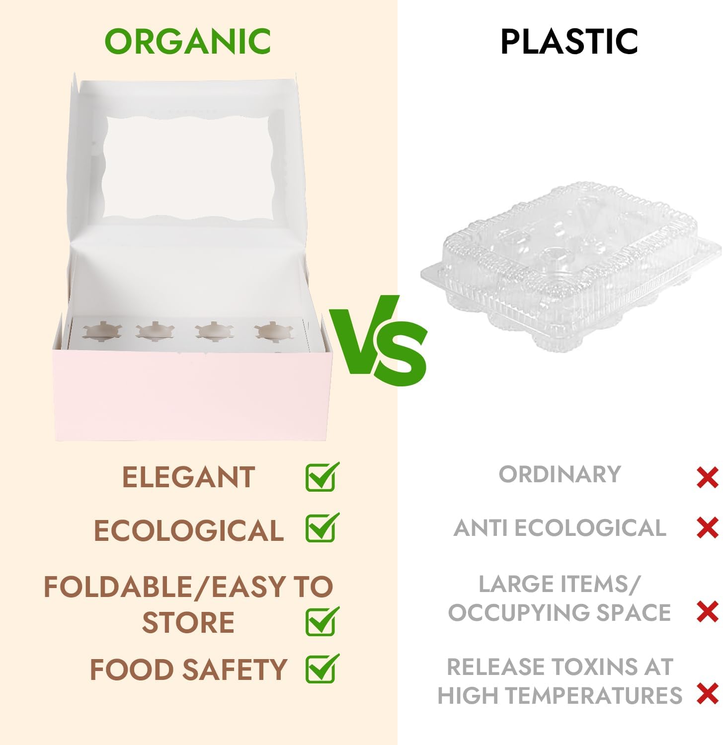 - Package Includes:8 Packs Cake and Cupcake Box Combo with Clear Window.cupcake boxes + inserts+ Stickers.The paper inserts keep the cupcakes stay in place from moving around. The cake box has a wide viewing angle, perfect for showcasing cakes while protecting them. It is a great choice for making cupcakes and pastries.