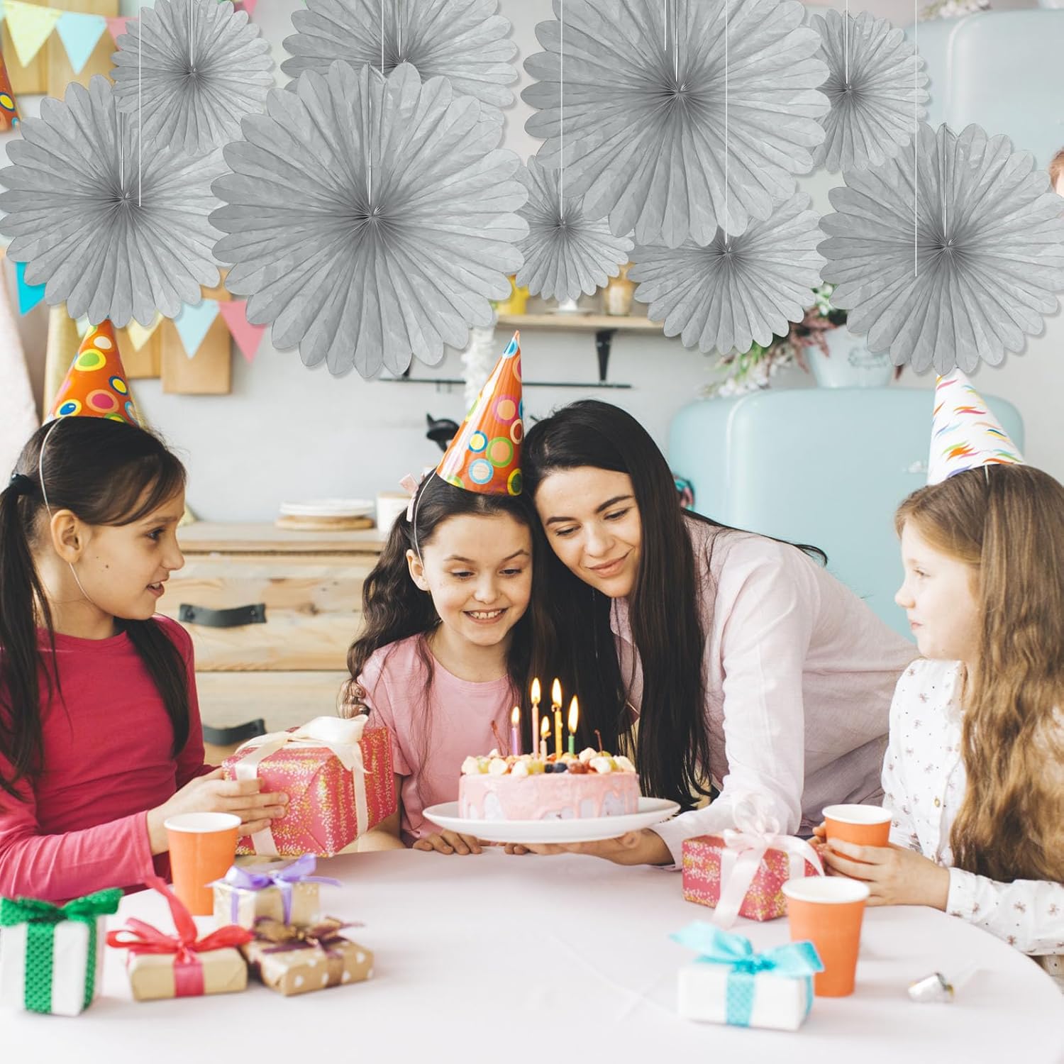 20 Pcs Silver Gray Hanging Paper Fan, Round Paper Fans Decorations Set for Weddings, Birthdays, Engagement, Bridal Shower, Baby Shower Event, Graduation, Party Supplies Decor