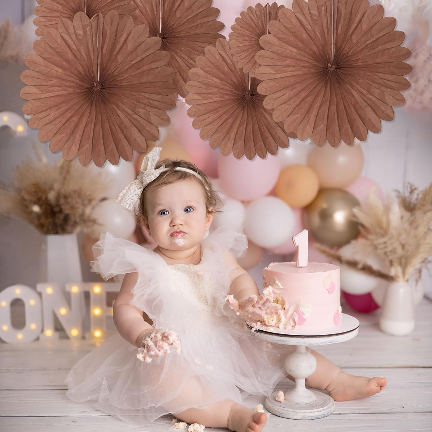 20 Pcs Deep Brown Hanging Paper Fan, Round Paper Fans Decorations Set for Weddings, Birthdays, Engagement, Bridal Shower, Baby Shower Event, Graduation, Party Supplies Decor