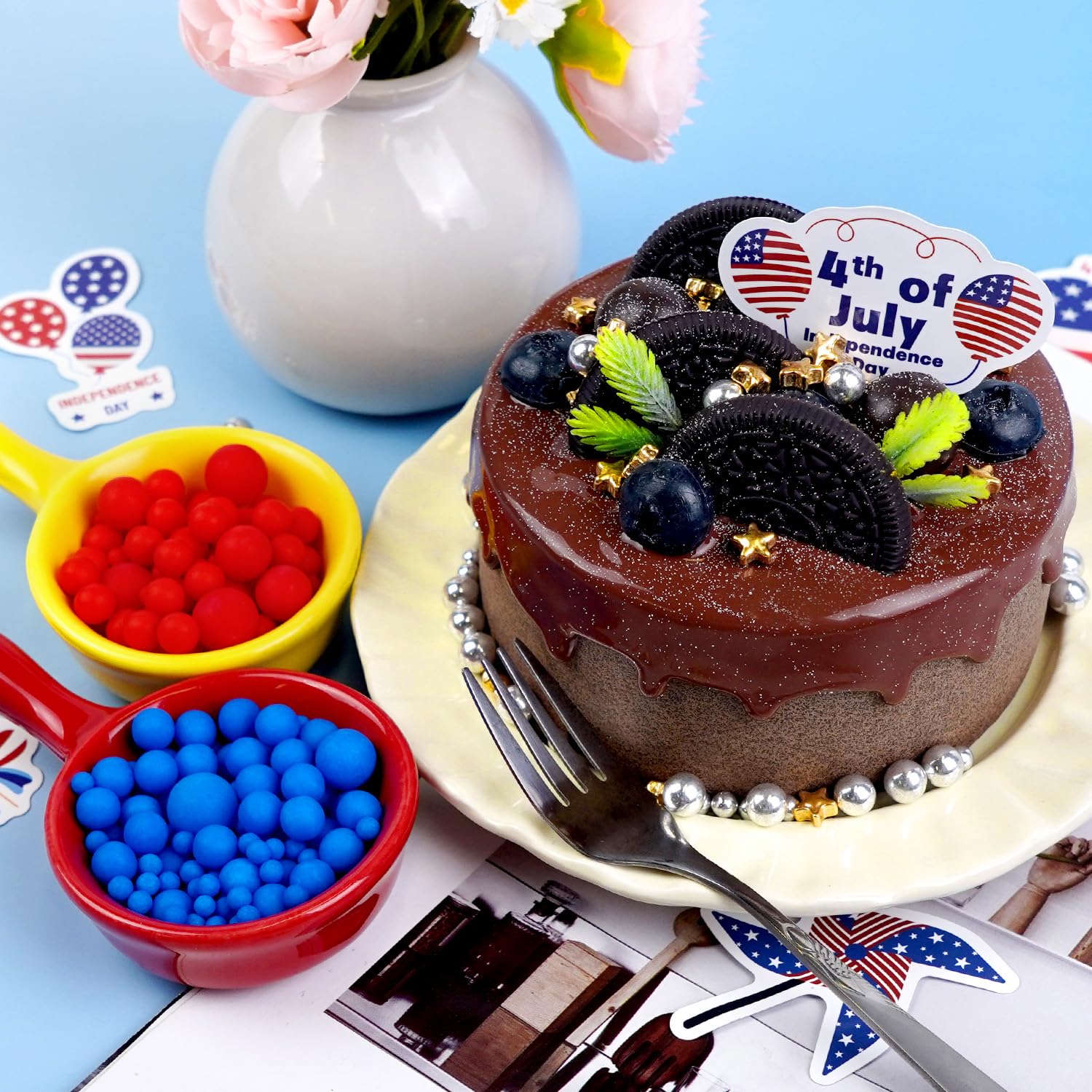 Dazzjoy 4th of July, Patriotic Sprinkles, Red Blue Silver Gold Sprinkles, Food Grade, Edible Pearls for Cake Decorating, 150g/5.29oz, Cake Decoration & Cupcake Topper