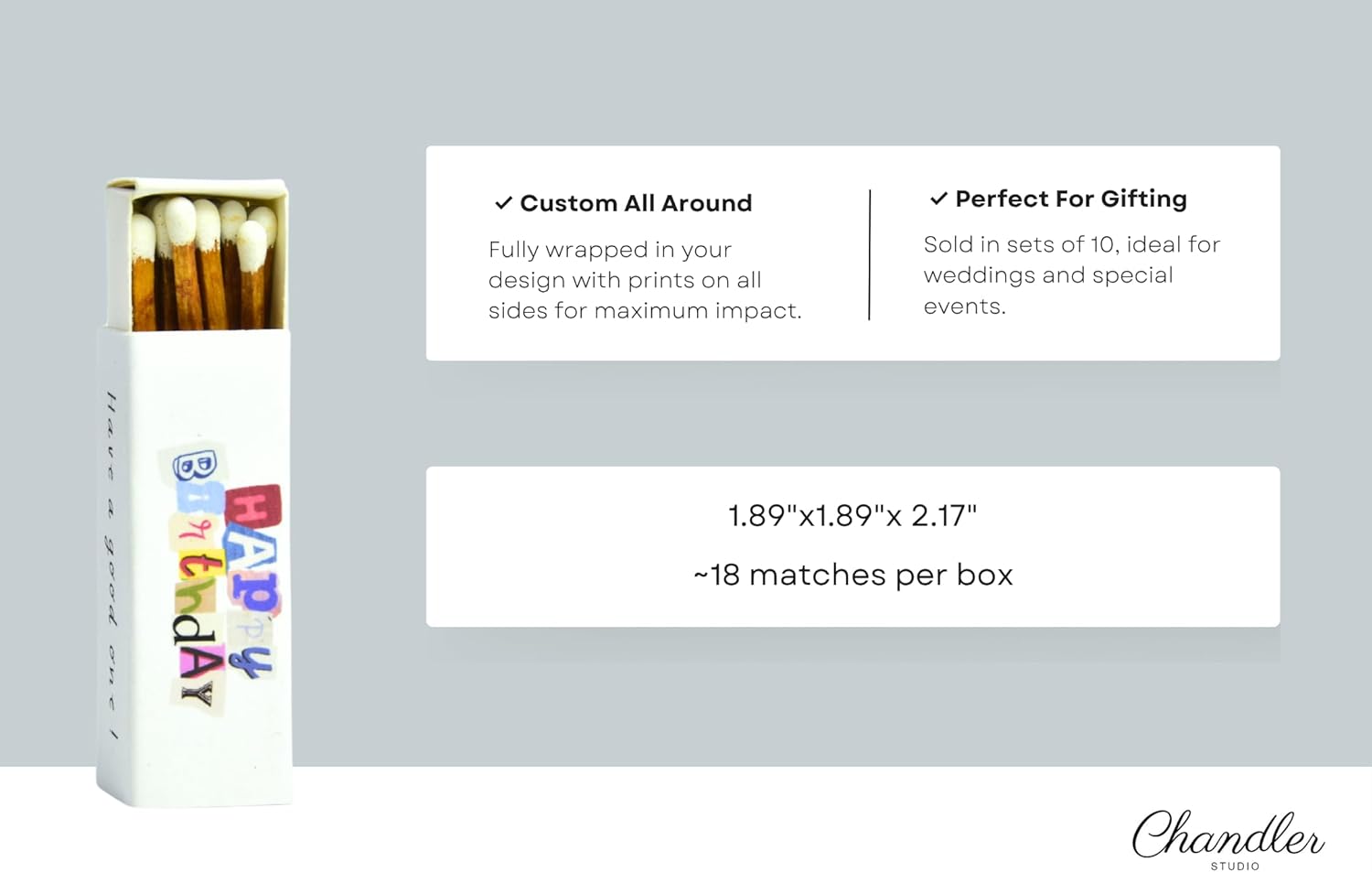- Make your Birthday celebration even more special with our Personalized Birthday Matchboxes, designed to add a fun and unique touch to your event. Each matchbox is wrapped in high-quality photo sticker paper, featuring your custom design to make each set truly one-of-a-kind.