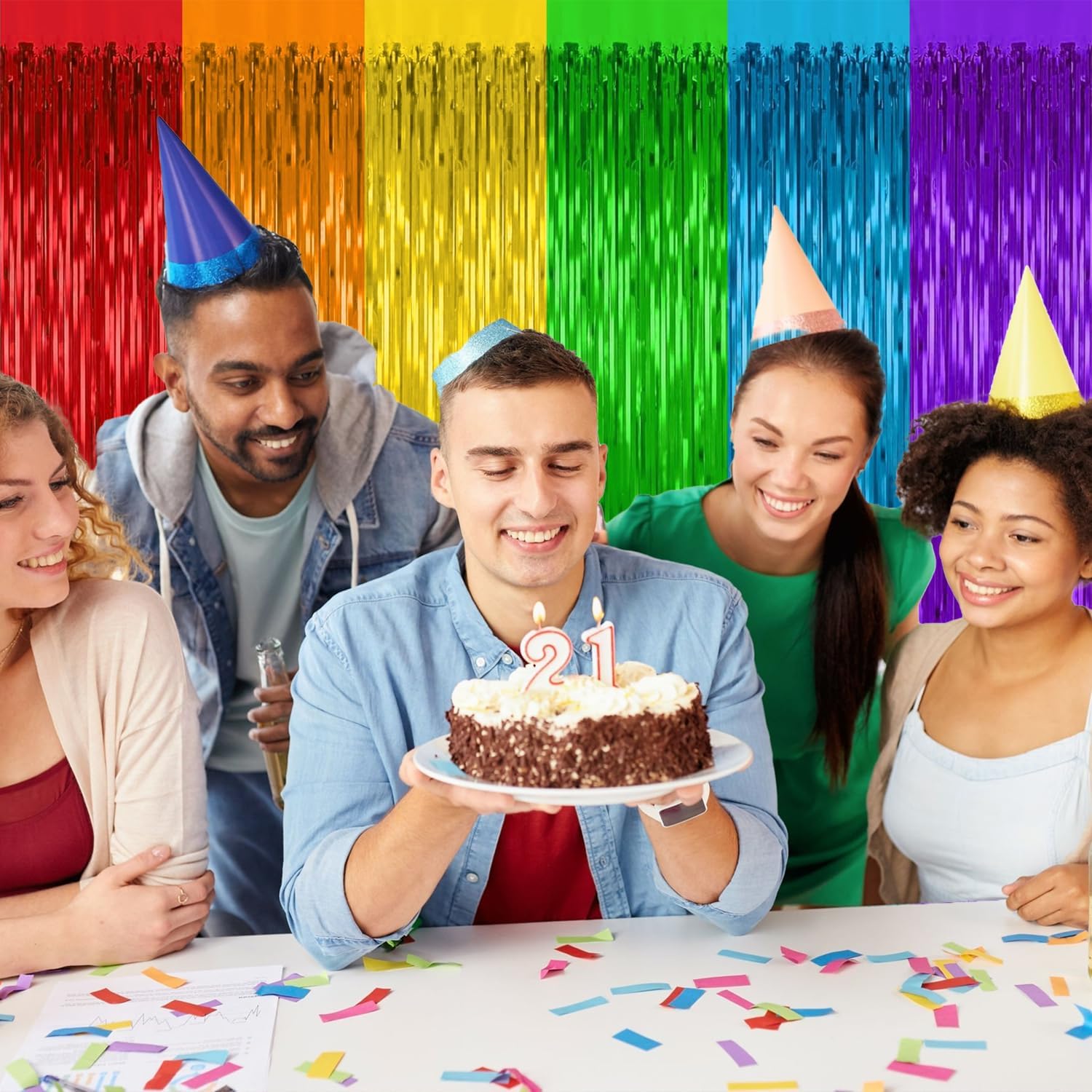 - Rainbow Party Decorations: 1 pack of red orange yellow,and 1 pack of green blue purple foil fringe curtains,Extra large size (width x drop) 3.28 Ft x 6.56 Ft,perfect for rainbow birthday party decorations.