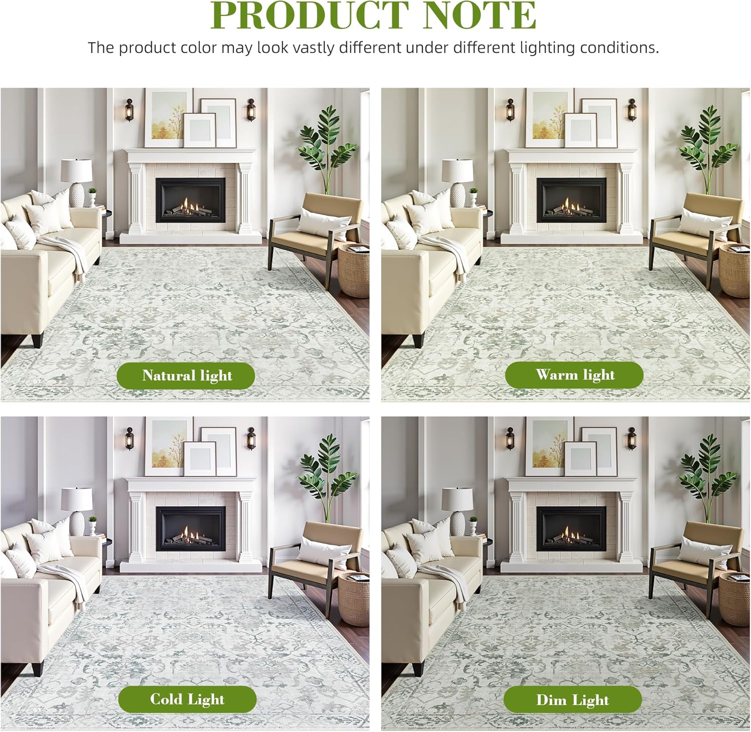 Deerly Green Area Rugs 9x12 for Living Room Soft Non-Slip, Large Bedroom Rug Vintage Dining Room Rug Tribal Farmhouse Carpet for Dining Room Office Green