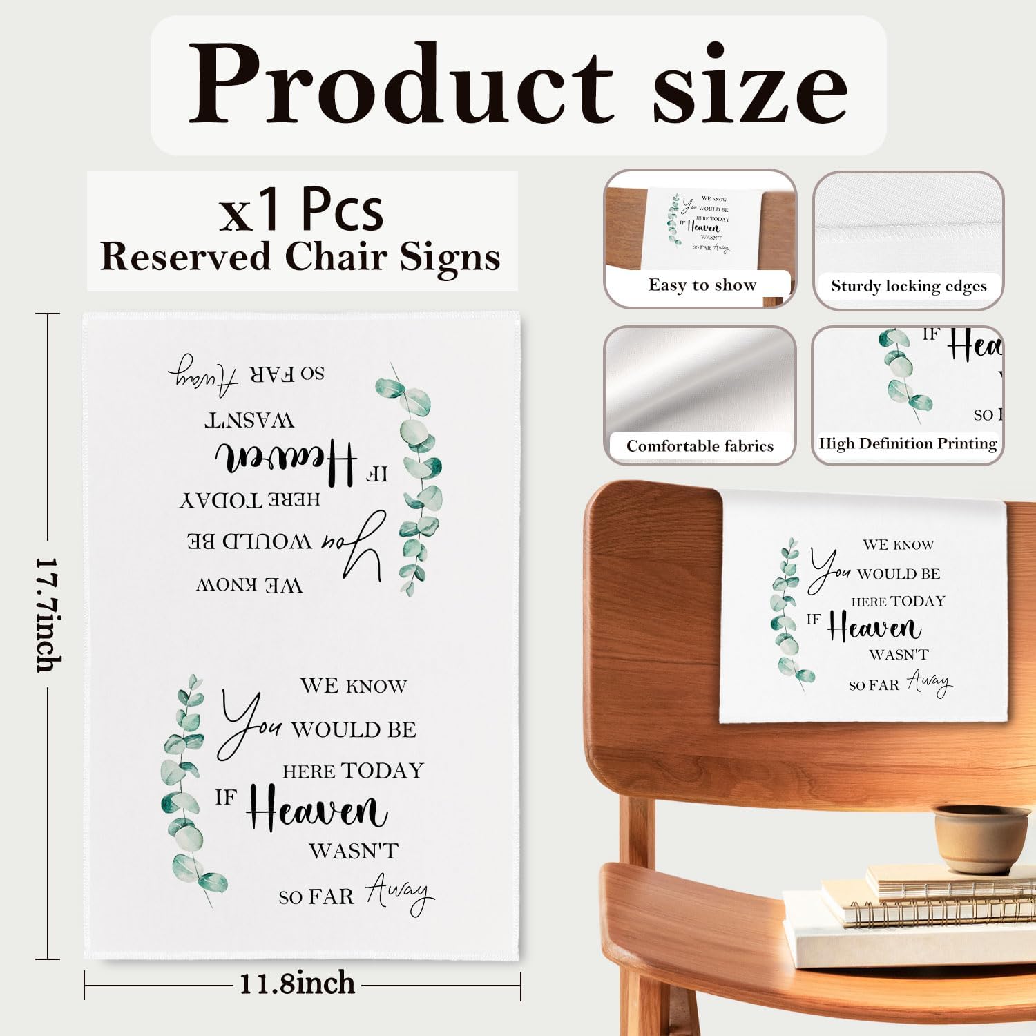 - Universal Fit: Each reserved seat sign measures approx. 30 x 45 cm / 11.81 x 17.72 inches, making it suitable for most standard chairs and benches. The size ensures that the message is easily visible to guests, while remaining easy to store and carry.