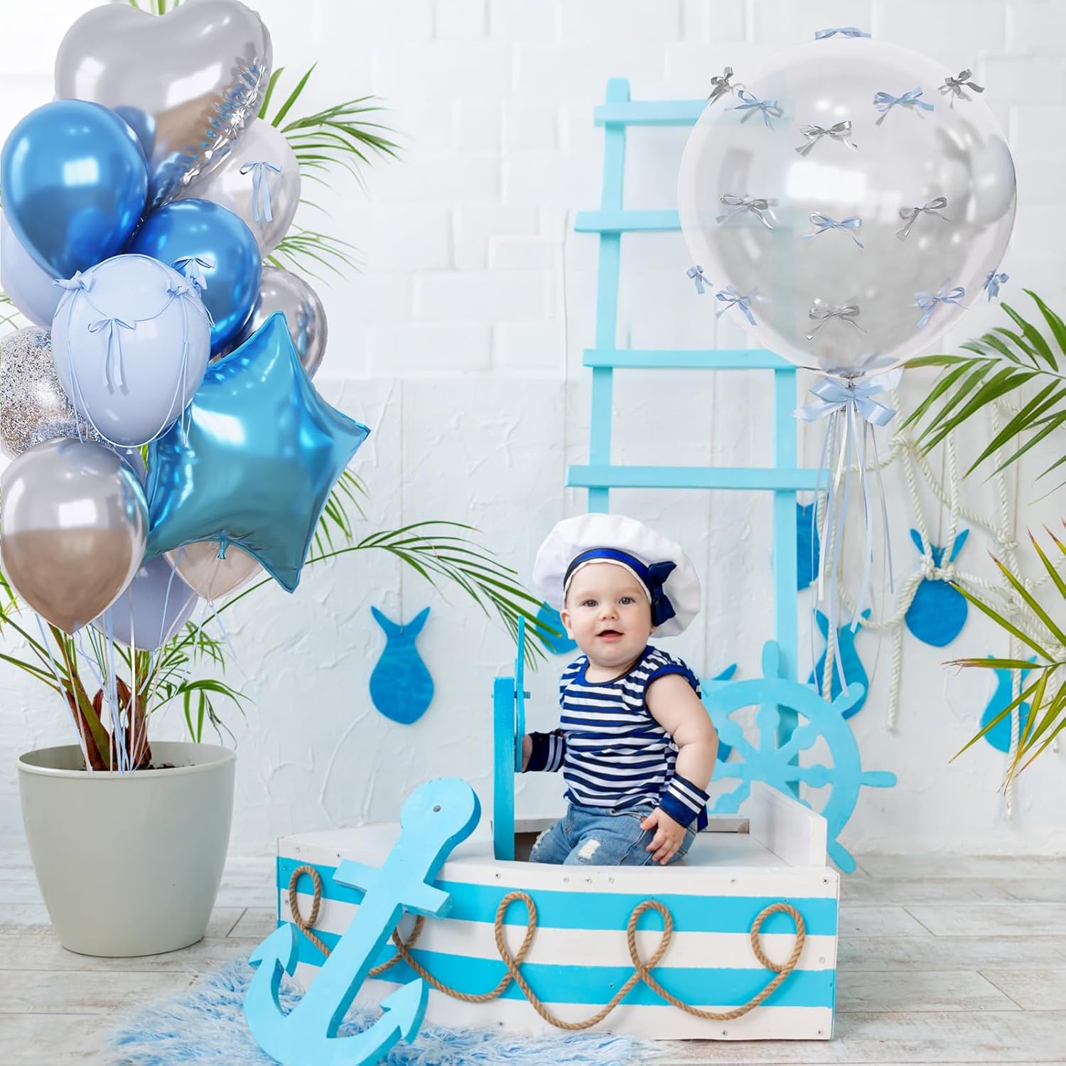 - 🥳【Heart Star Balloons Set - Exquisite&Unique Party Decor】:Light Blue Star Foil Balloons (18-inch x 2), Silver Heart Foil Balloons (10-inch x 2), Transparent Clear Balloon (18-inch x 1), Silver Confetti Balloons (12-inch x 4), Metallic Silver Balloons (12-inch x 2), Metallic Blue Balloons (12-inch x 4), Pearl White Balloons (12-inch x 4), Pearl Light Blue Balloons (12-inch x 2), Macaron Blue Balloons (12-inch x 4), Ribbons (Light Blue x 10 M, Silver x 10 M).