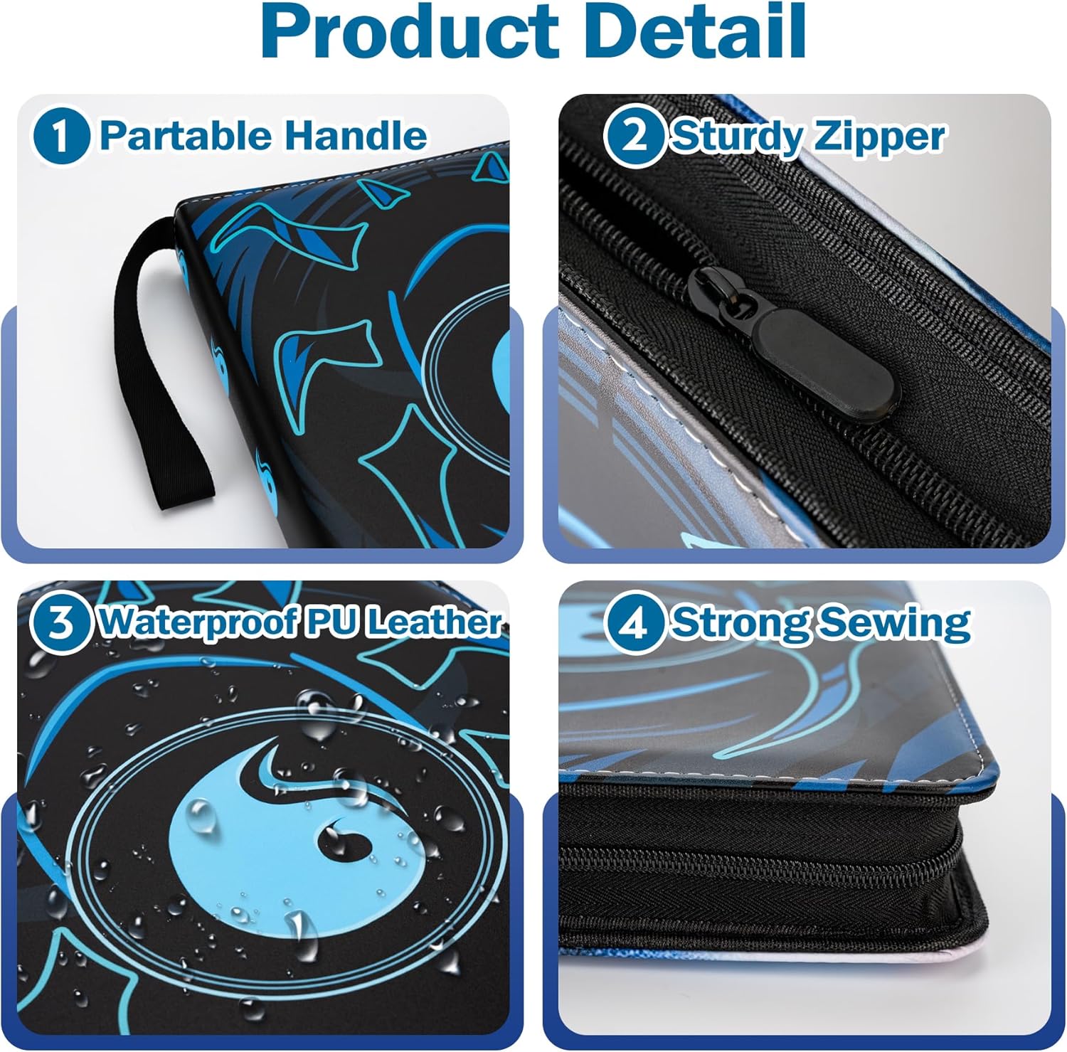 - Made To Last :-our carrying case binder is comfortable to touch and hold in hands. The card binder for trading cards is made of premium PU leather, Water or raindrops won’t seep through. Closed zipper design provides multiple protections so that the inner page or cards does not fall.Handle straps design can carry around to show off cards to your friends
