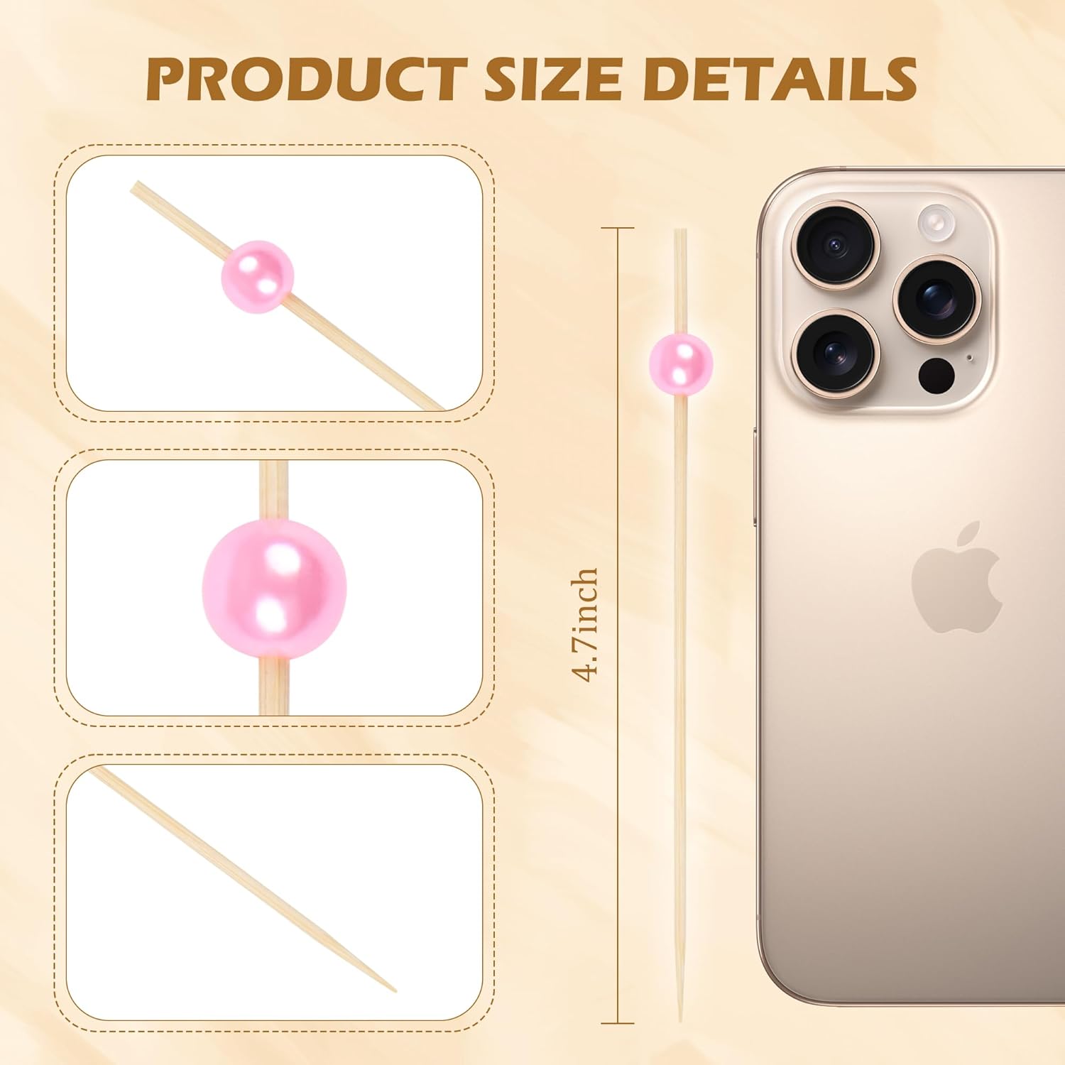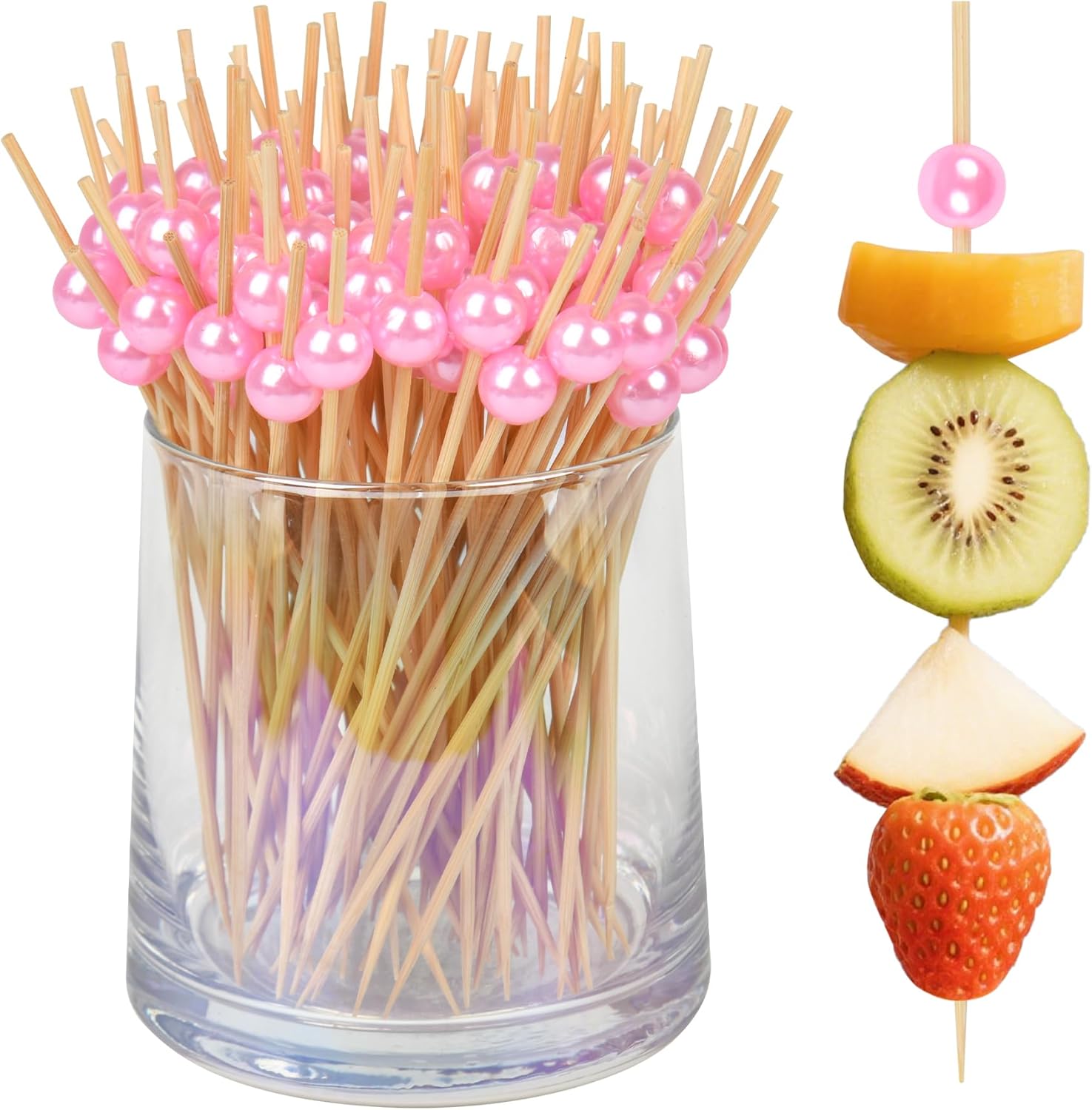 300Pcs Fancy Toothpicks for Appetizers,4.7Inch Pink Pearl Cocktail Picks For Drinks,Bamboo Appetizer Skewers for Charcuterie Boards Accessories,Martini, Sandwich,Desserts,Fruit,Pink Party Decorations