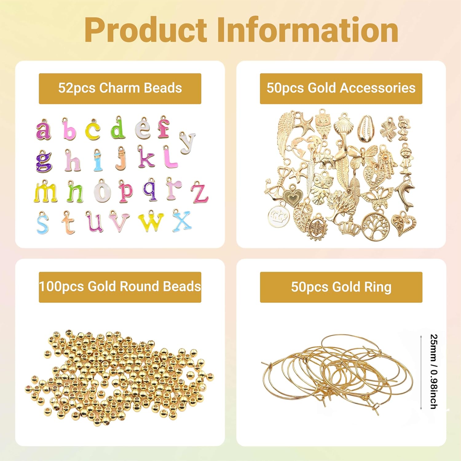 - Versatile Charm Combinations: Multicolor rhinestone beads blend with 50 assorted gold-plated pendants (heart, butterfly, starfish, seashell, crown, etc.), catering to diverse themes from beach parties to bridal showers