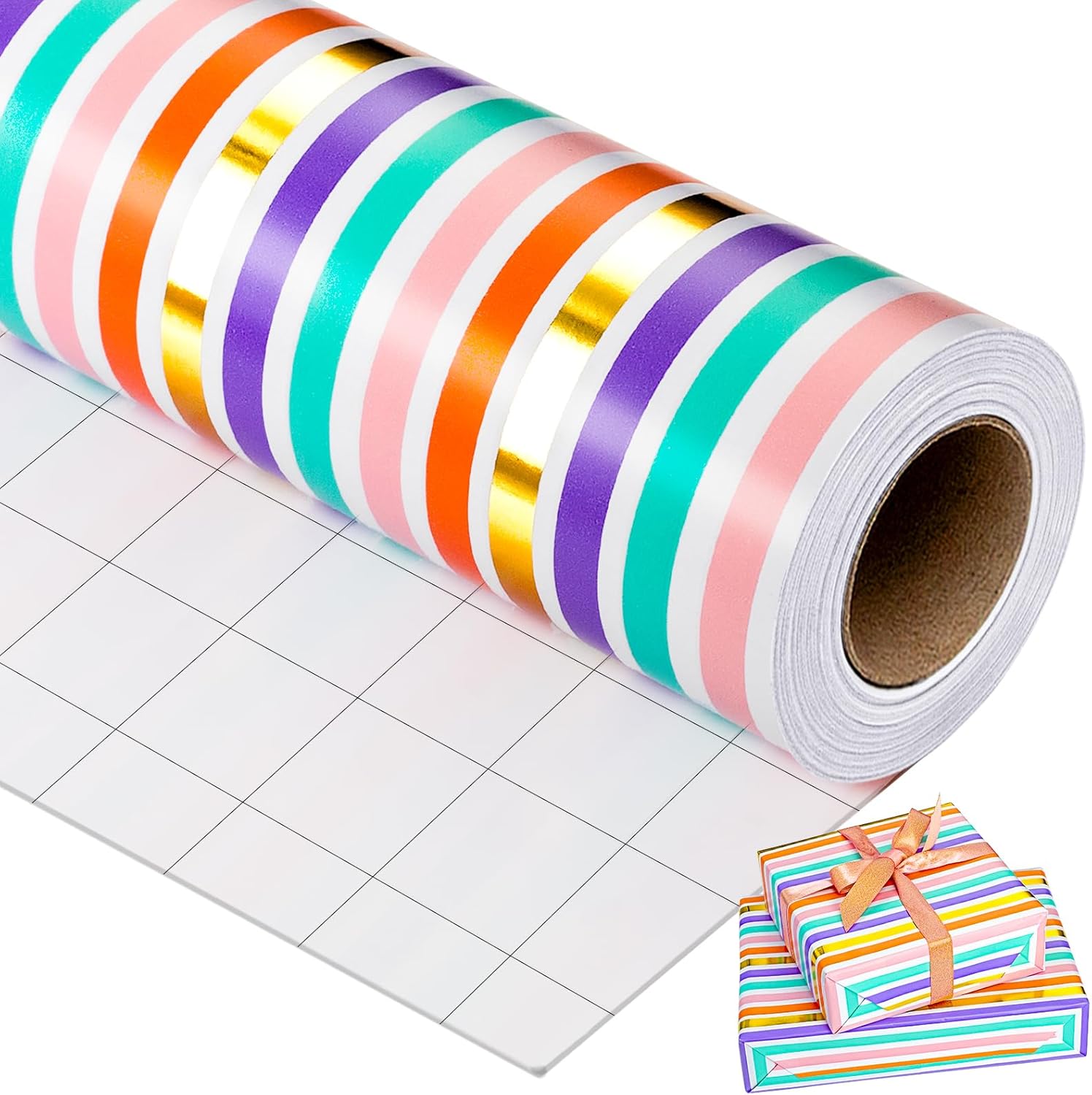 - Vibrant & Festive Wrapping Paper: The striped wrapping paper features a stunning mix of bold rainbow colors with gold foil accents, making every gift stand out. The cheerful, modern design is perfect for birthdays, baby showers, and special celebrations
