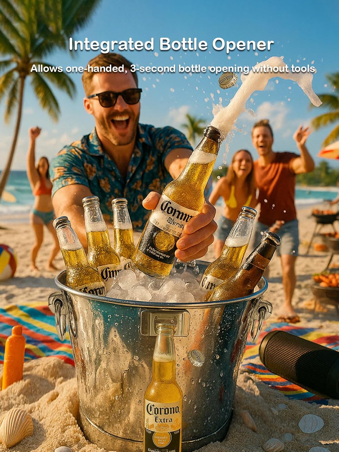 - 【Integrated Bottle Opener & Anti-Slip Base】 Built-in opener on the bucket body allows one-handed, 3-second bottle opening without tools. The concave base prevents the ice bucket from slipping due to condensation, which helps to place the beverage firmly.