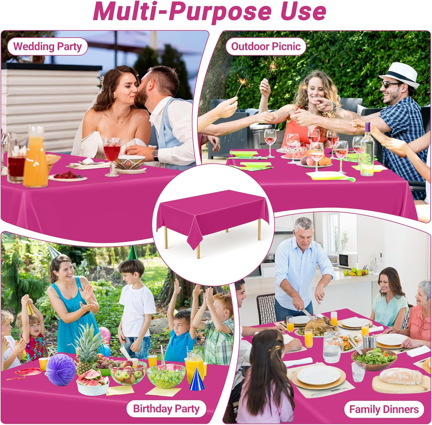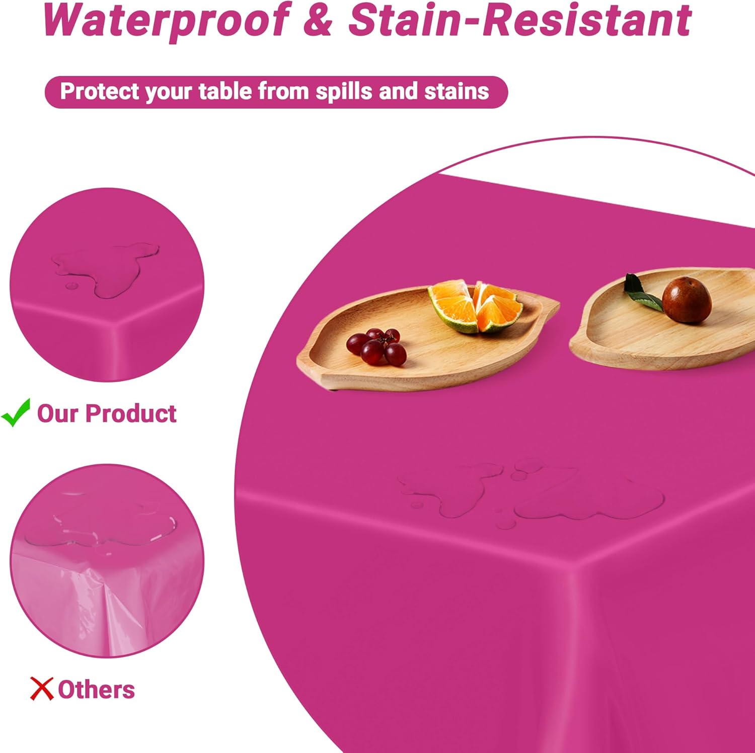 - Vibrant Color Options: Our plastic tablecloth in rose red is perfect for any occasion. The plastic table cloth creates an inviting ambiance that complements both indoor dining elegance and outdoor festive setups.