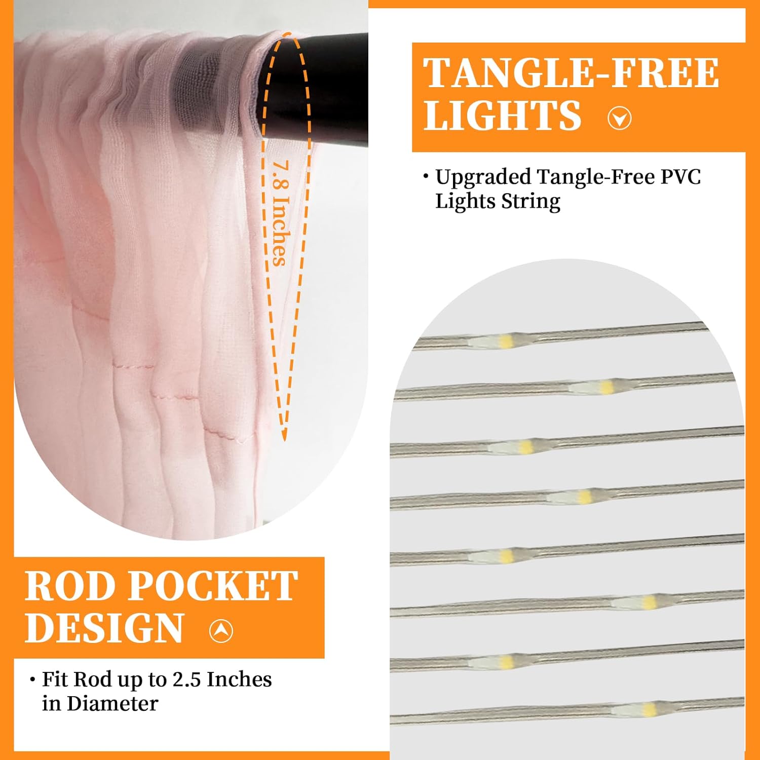 - Easy Setup & Reusable Decor: Designed for convenience, the tulle curtain features a 2.5-inch rod pocket for easy hanging on pipes or stands. Includes 12 Transparent clips make the lights simple to hang and secure to the backdrop, adding a warm, inviting glow. Reusable and easy to store, this set is perfect for multiple events