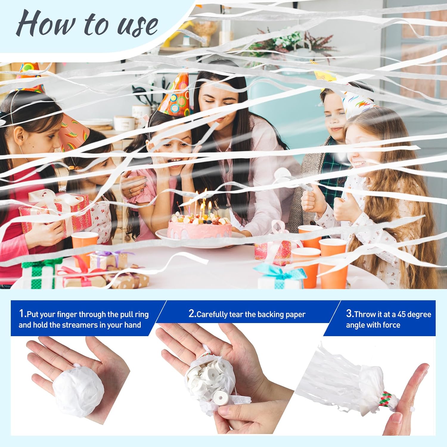 - No Mess: Slofunif party streamers are easier to pack than normal confetti. You just need to grab the pull ring and pull back the ribbon, then you can easily put it away and ball it up into a paper ball