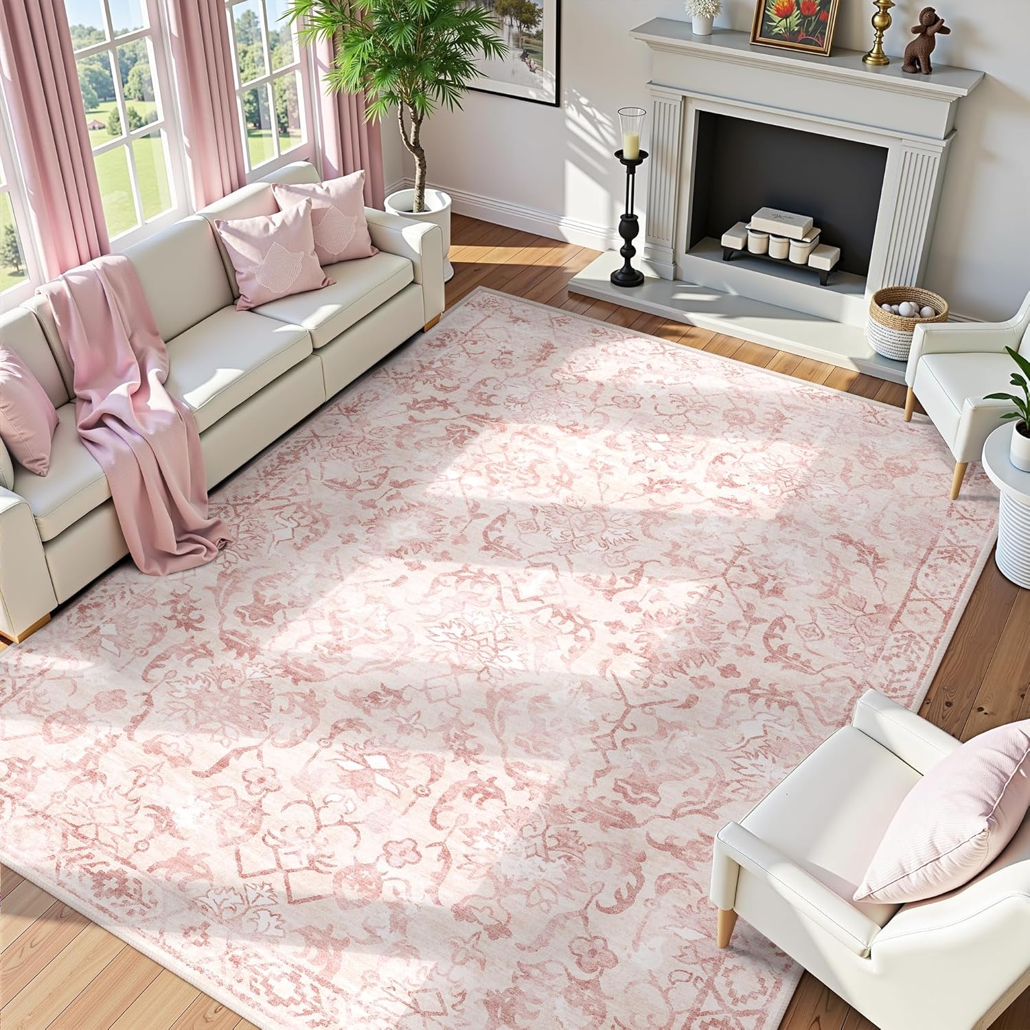 - Deerly Vintage 9x12 Rugs for Living Room: This area rug features trendy faded style and unique neutral distressed floral pattern, vintage tones combines the pink and ivory color, creating a comfortable and warm family environment. Dorm carpets are suitable for living room, bedroom, dining room, office, etc.