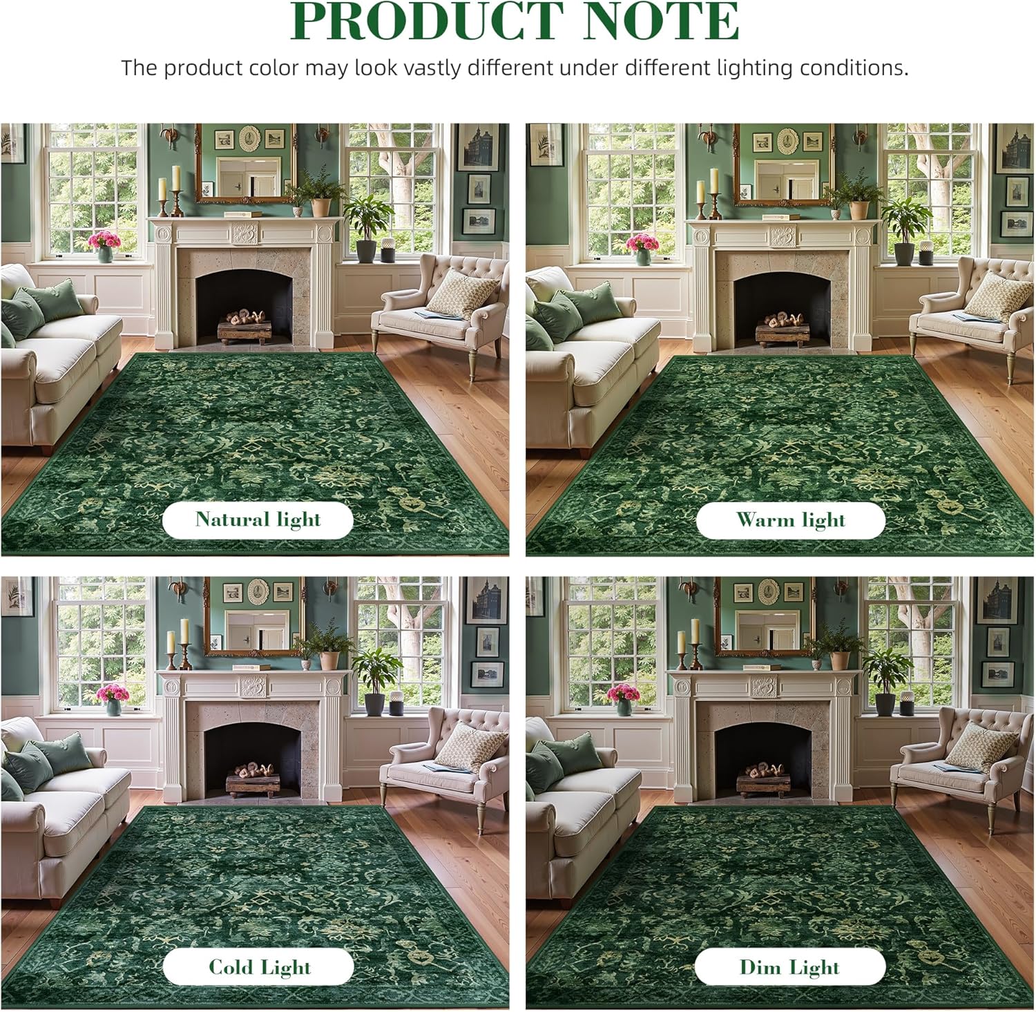 Deerly Dark Green Area Rugs 9x12 for Living Room Soft Non-Slip, Large Bedroom Rug Vintage Dining Room Rug Tribal Farmhouse Carpet for Dining Room Office Green