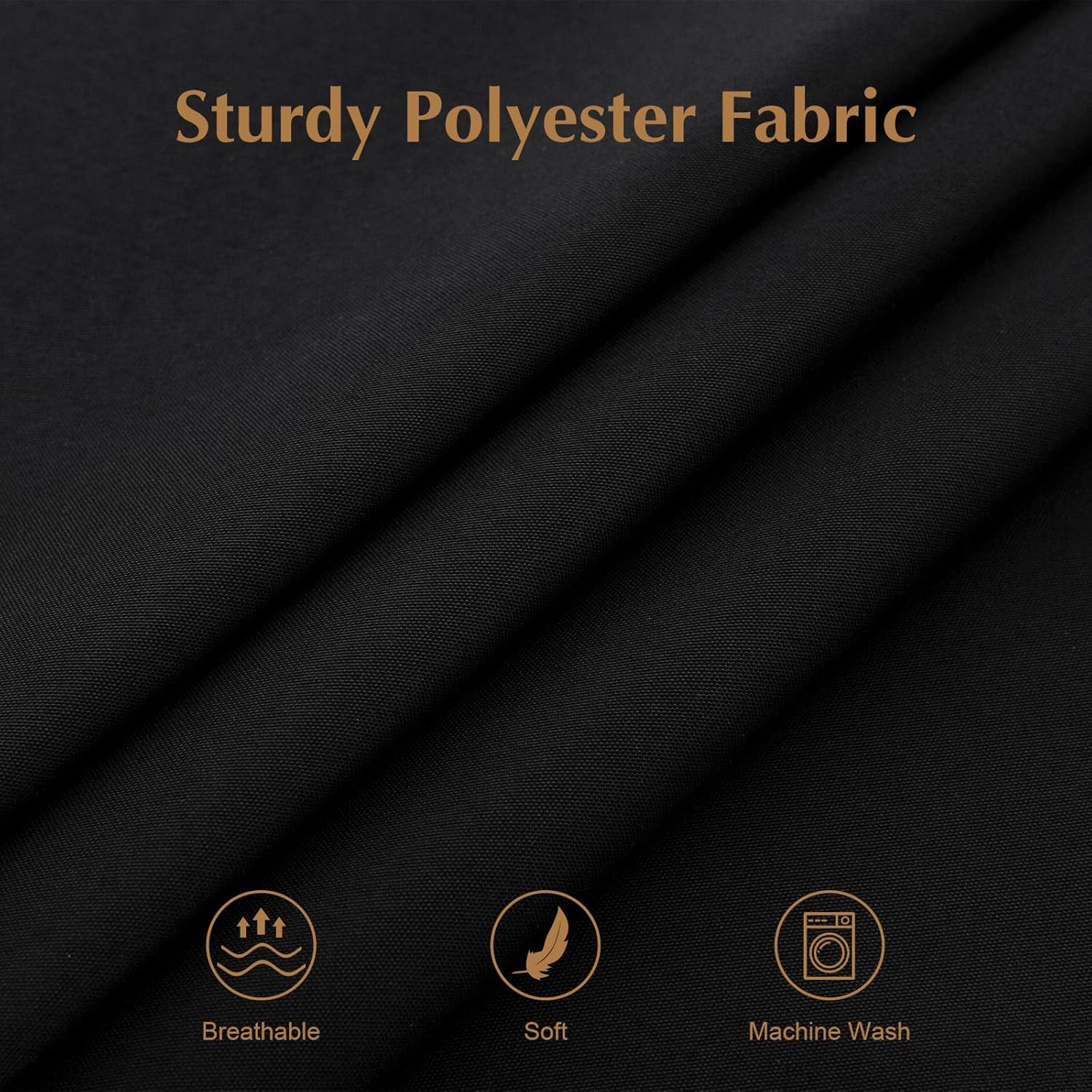 - Tablecloth Material: These solid black tablecloths are made of polyester, which makes them soft, sturdy and stain resistant. Our tablecloths, our heavy duty round tablecloths are washable, scratch-resistant, not easily broken, and long-lasting