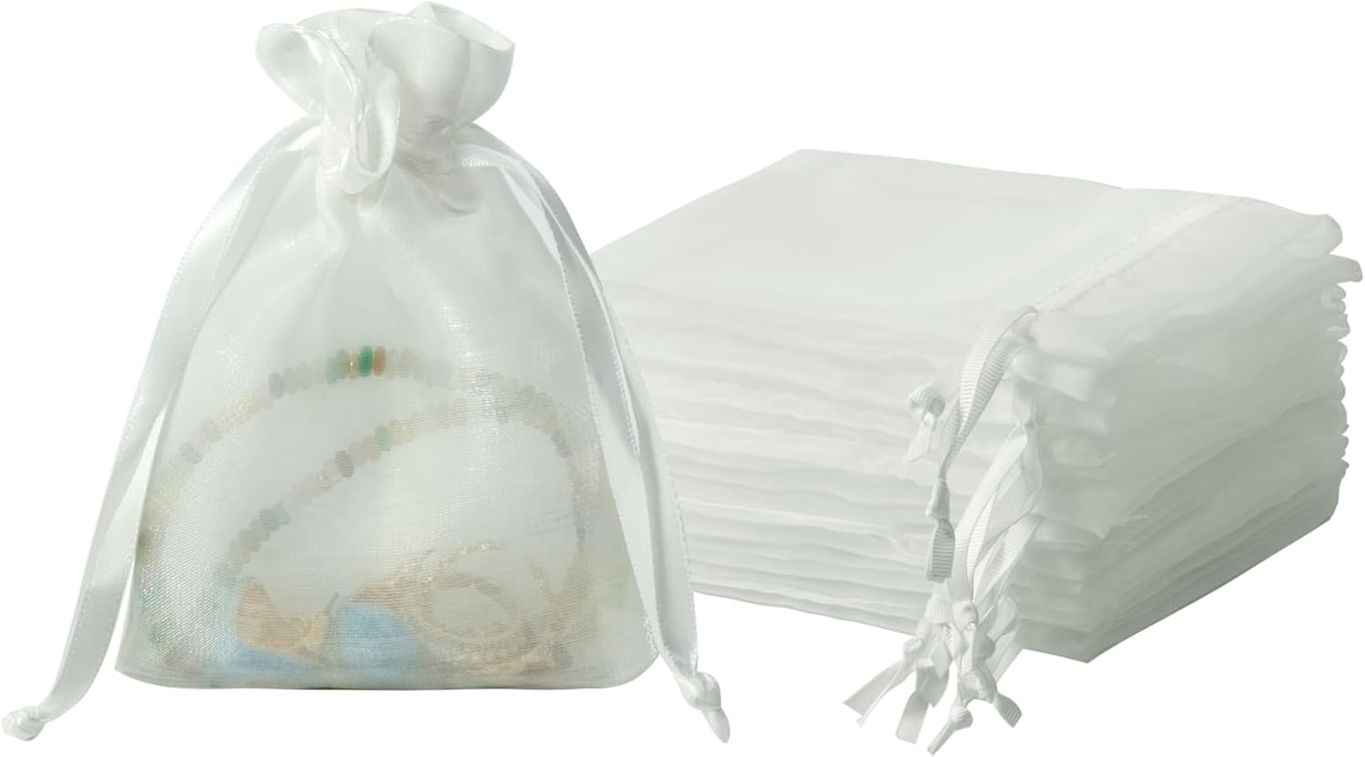 QIANF 20 Pcs White Small Organza Bags 4X6 inch for Wedding Favors with Drawstring, Mini Mesh Gift Bags Jewelry Pouch for Candy Bridal Shower Party Favor Baby Shower Christmas