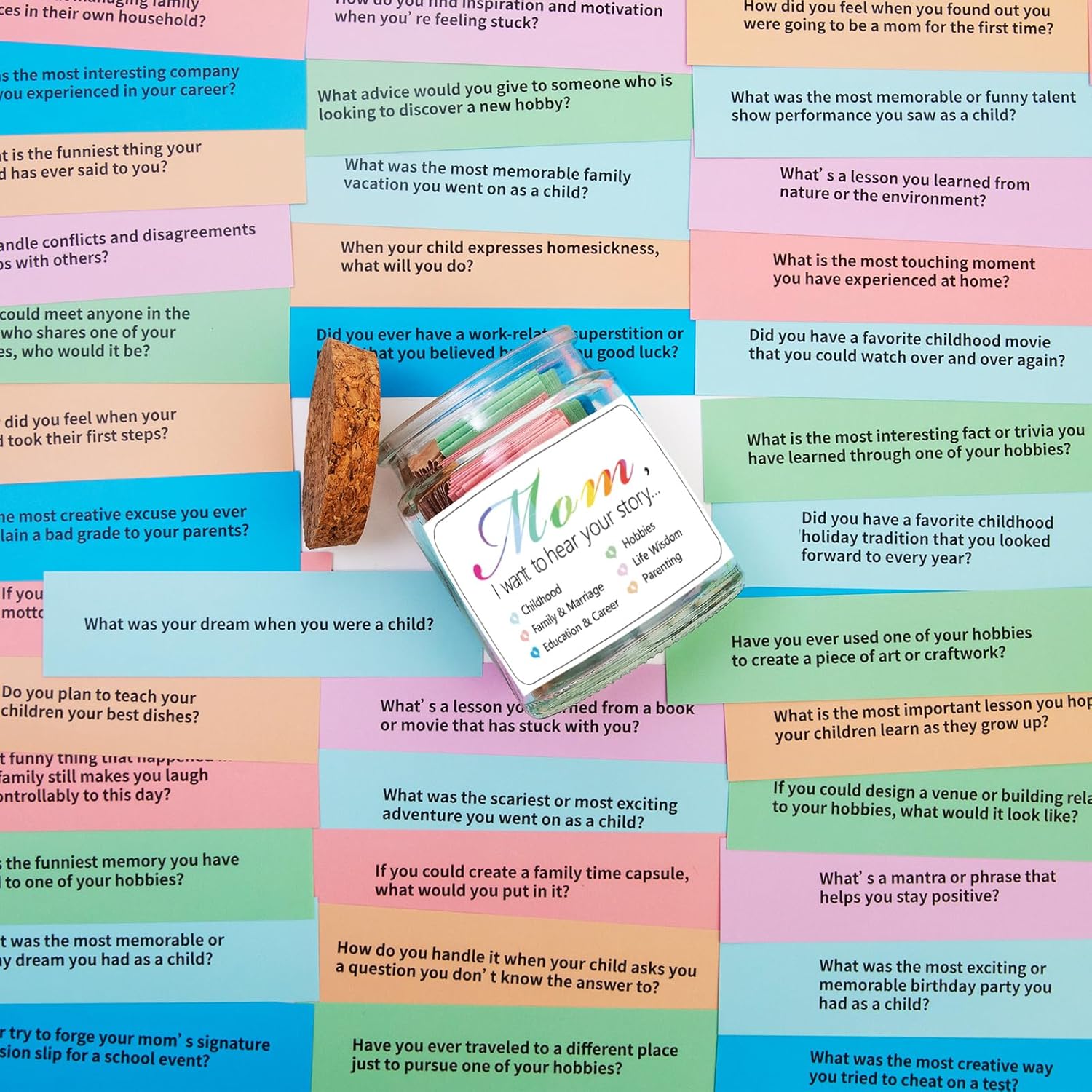 Mom, I Want to Hear Your Story Jar with 90 PCS Cards, Mothers Day Birthday Gifts From Daughter Son, Christmas Mother in Law New Mom Gifts Conversation Cards for Family