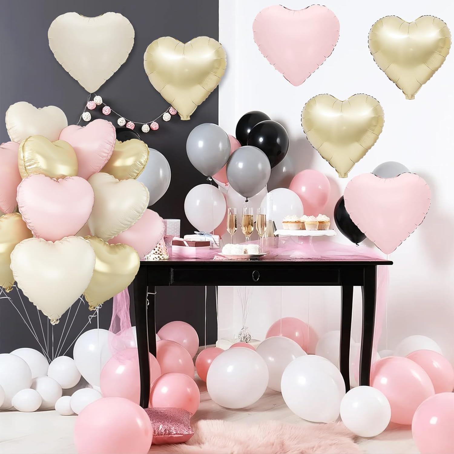 Pink White Gold Heart Balloons,12Pcs 18Inch Cream White Baby Pink Champagne Gold Heart Shaped Foil Helium Balloons for Baby Shower Birthday Anniversary Wedding Engagement Party Decorations