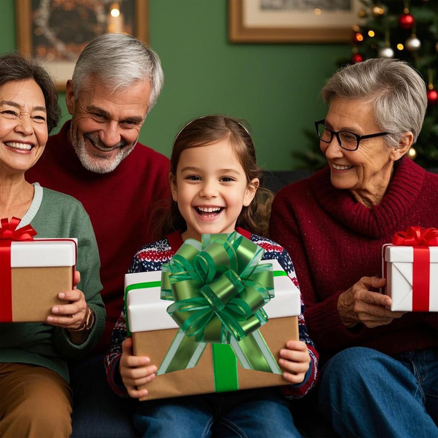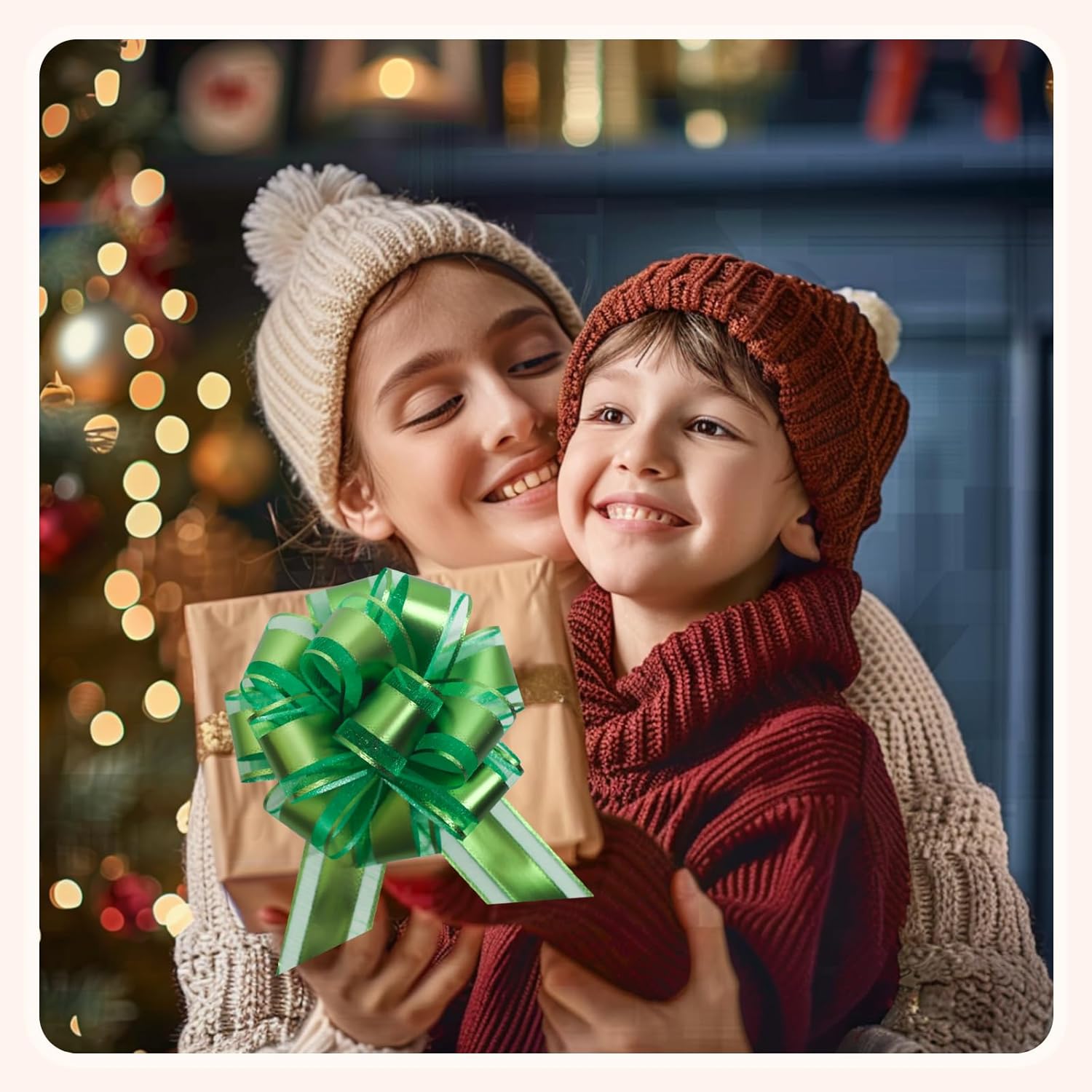 12 PCS 6 Inch Large Pull Organza Green Bows - Perfect for Gift Wrapping, Wedding Decor, Car Bows, Birthday Parties, Christmas and Valentine's Day
