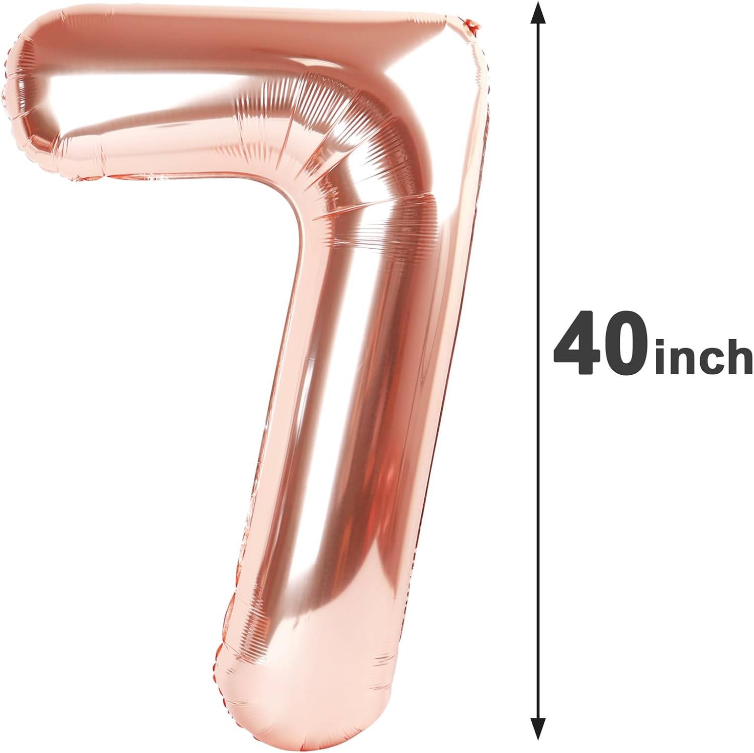 - 4.Suitable 40 Inch Easy to Use:40 inch number 7 balloon,huge size and beautiful balloons appearance.7 birthday balloon rose gold can reduce the complexity of installation,you can use a straw at the rose gold party supplies hole,with natural air to blow and deflate the 7 happy anniversary balloons,filled 90% of the seal,without fingers tied, greatly reduce installation troubles.After the birthday balloons men party,use a straw or deflate yourself.Amazing and convenient rose gold number balloon!