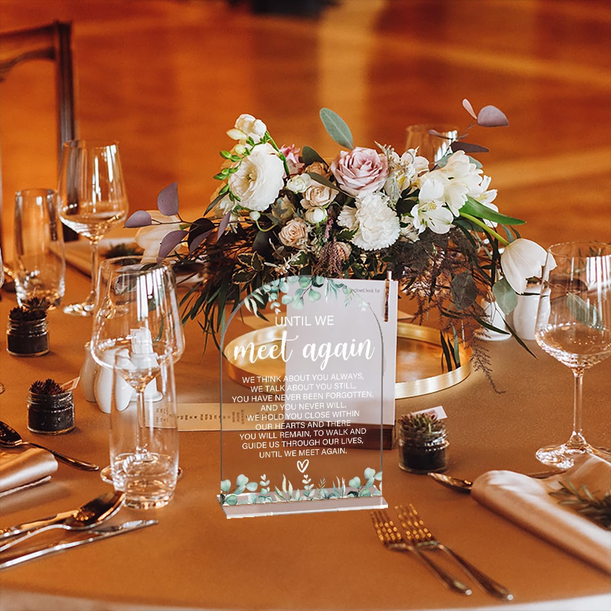 Acrylic Wedding Sign Until We Meet Again Signs for Ceremony Modern Calligraphy Arch Acrylic Table Top Signs for Wedding Reception and Event Party Table Decor (Eucalyptus Leaves)