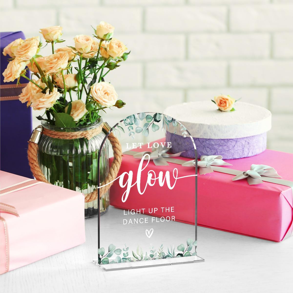 Acrylic Wedding Sign Let Love Glow Signs for Ceremony Modern Calligraphy Arch Acrylic Table Top Signs for Wedding Reception and Event Party Table Decor (Eucalyptus Leaves)