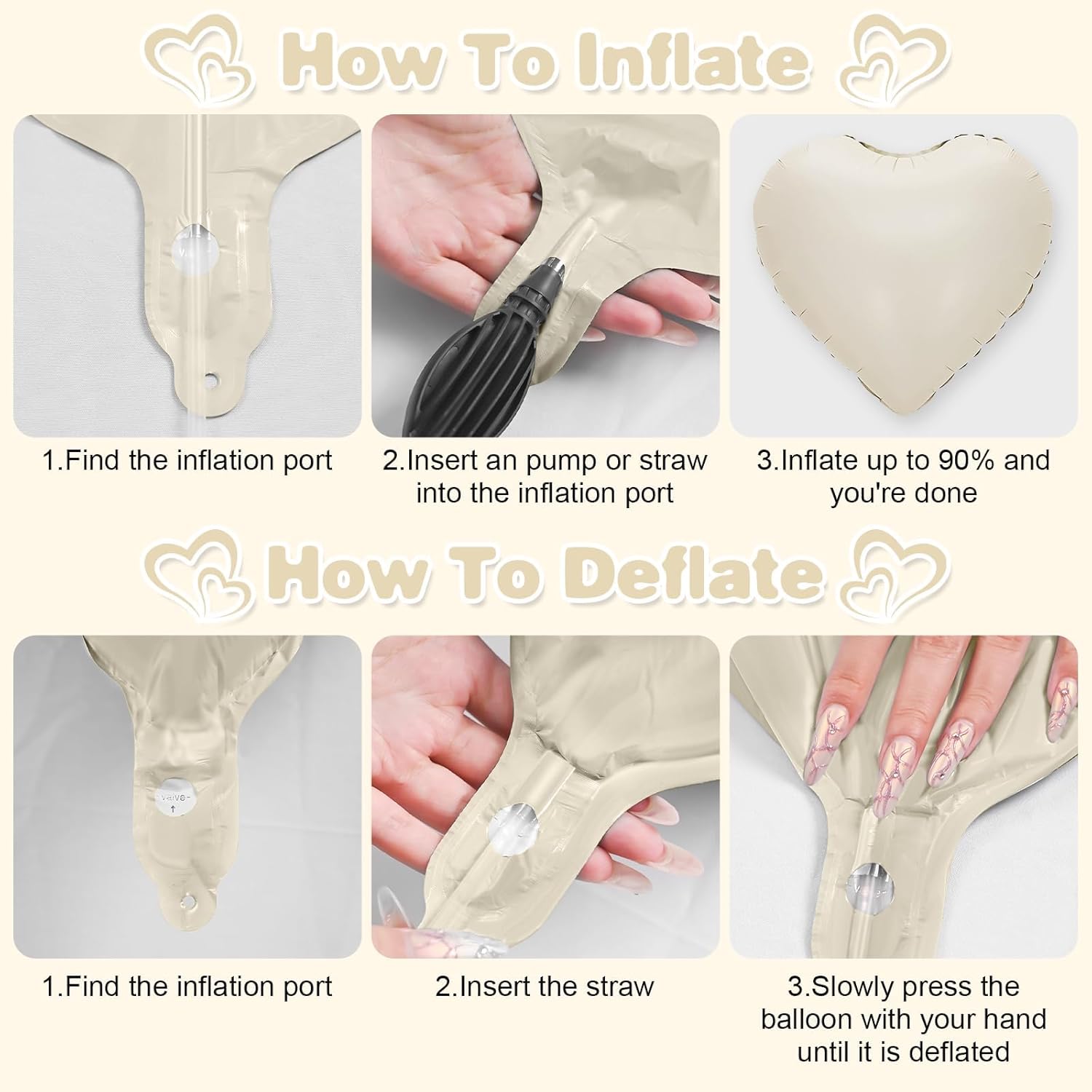 - 12PCS HEART BALLOONS:Package include 4pcs baby blue heart foil balloons,4pcs cream white foil balloons,4pcs beige heart foil balloons,1pc straw.Large enough to help you better decorate your party.